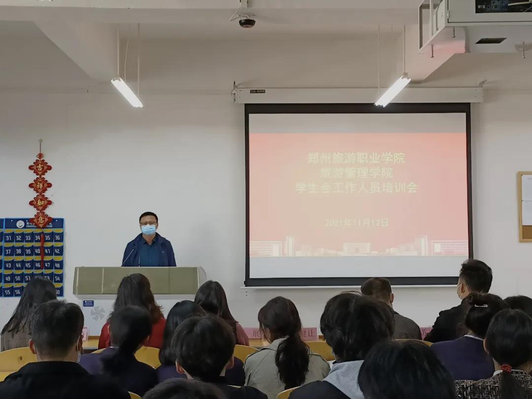 2021年11月12日,旅游管理学院学生会工作人员培训会在5号教学楼402召开。党总支副书记张楗让,团总支代书记苏涛、全体辅导员老师、学生会全体工作人员参加本次培训。