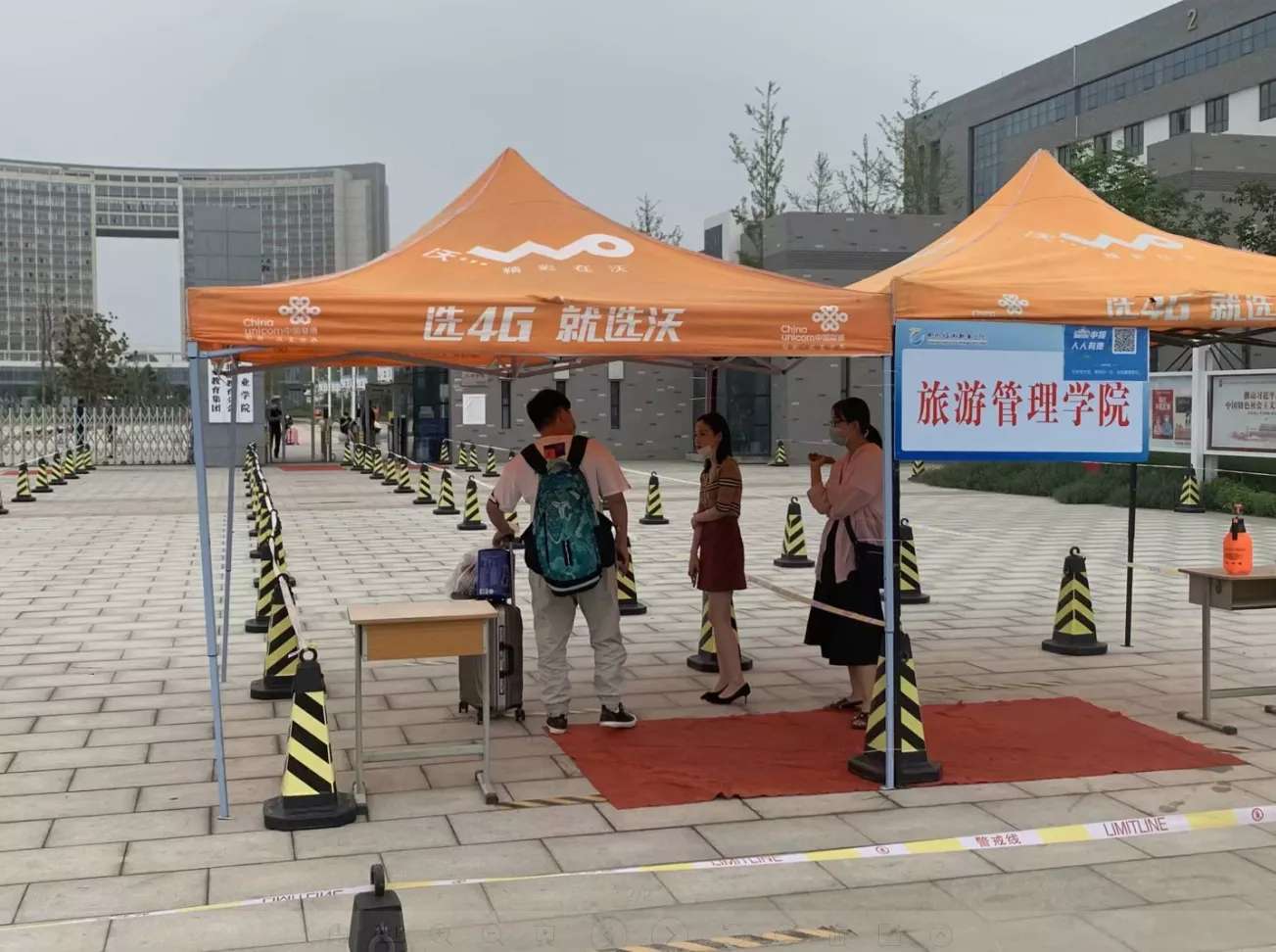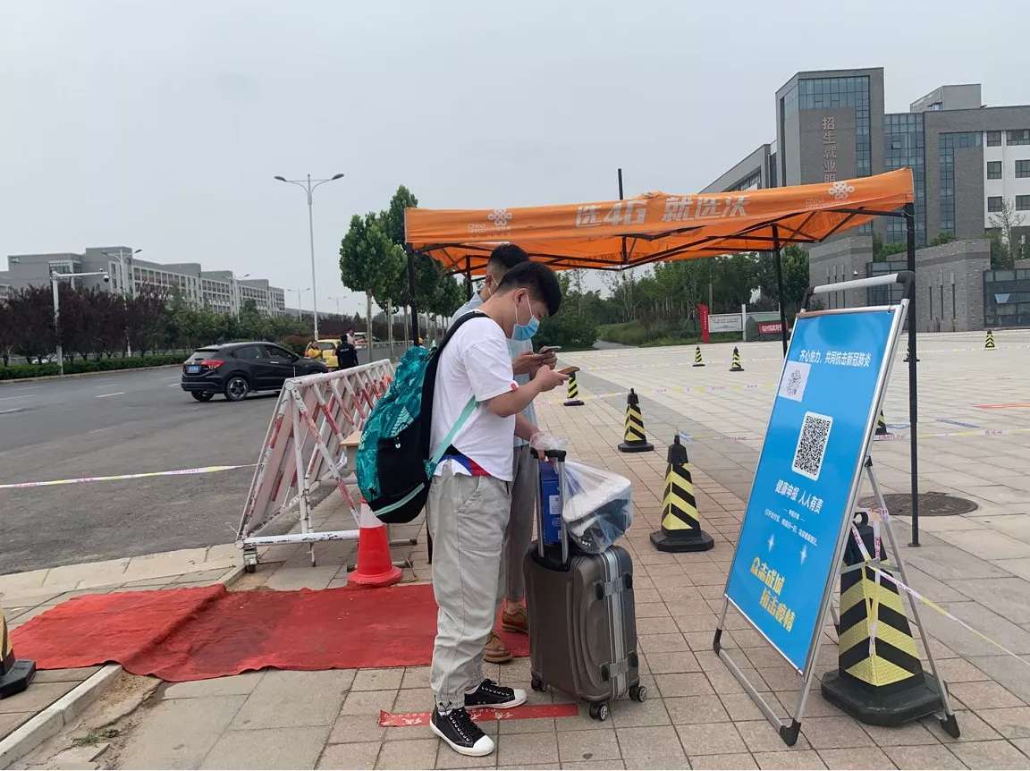 在前期模拟演练的经验基础上,6月30日——7月1日,我院专升本考生经过扫码查验,体温检测、单人通行、保持间隔入校,领取防疫手册,入住学生公寓等环节安全顺利返校报到。