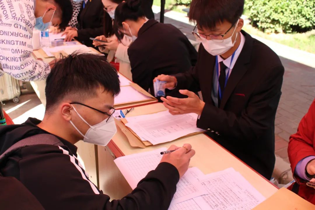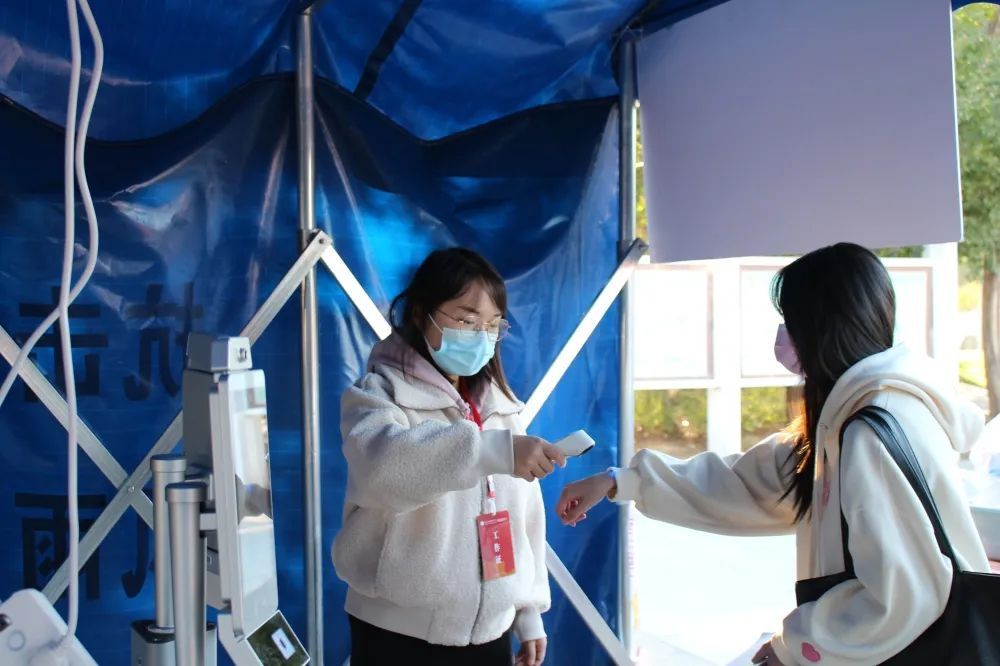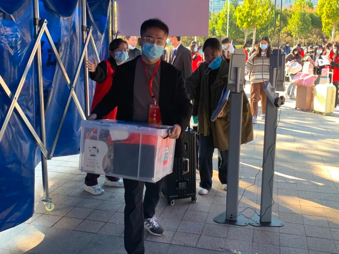 迎新现场,学院教师及志愿者全程引导新生,严格遵守“卫生消杀——扫码核验——查验体温——核酸检测——入学报到——宿舍分配——入住宿舍”的流程,高效、有序的帮助新生顺利入校、流畅完成报到手续。
