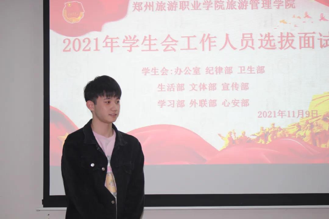 2021年11月5日,旅游管理学院学生会纳新面试活动在5号教学楼402开展。20级学生会各部部长和21级新生参加活动。学生会各部门部长担任面试官。