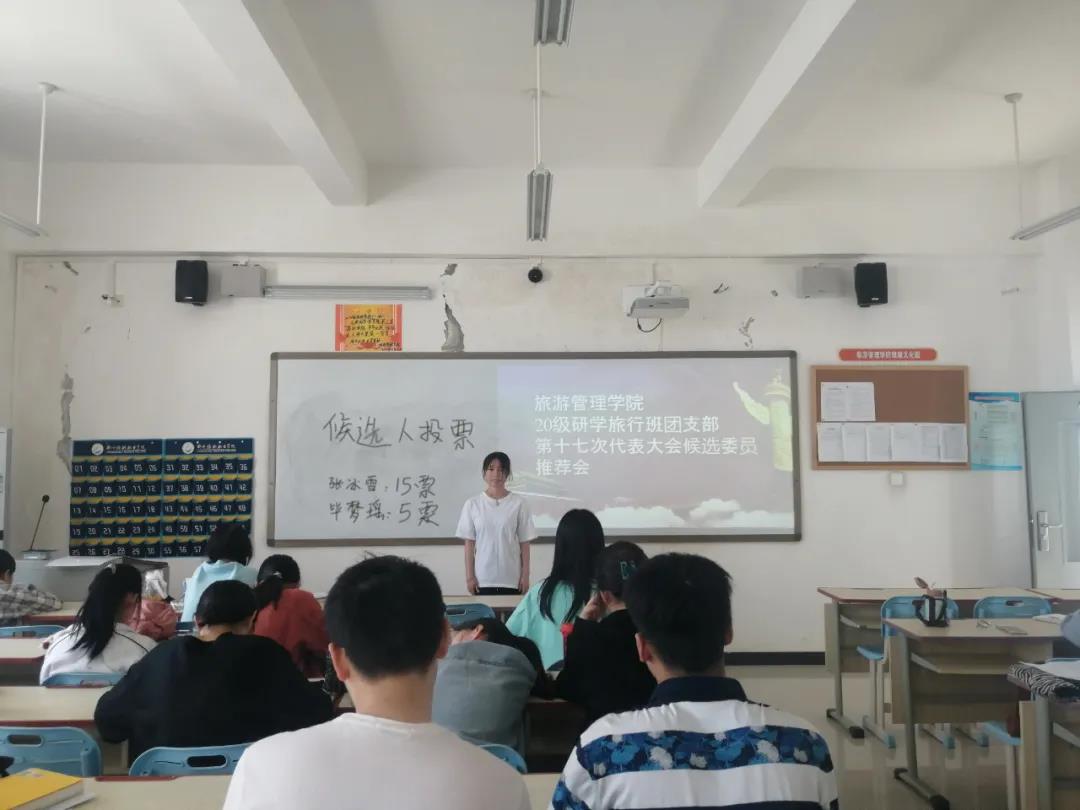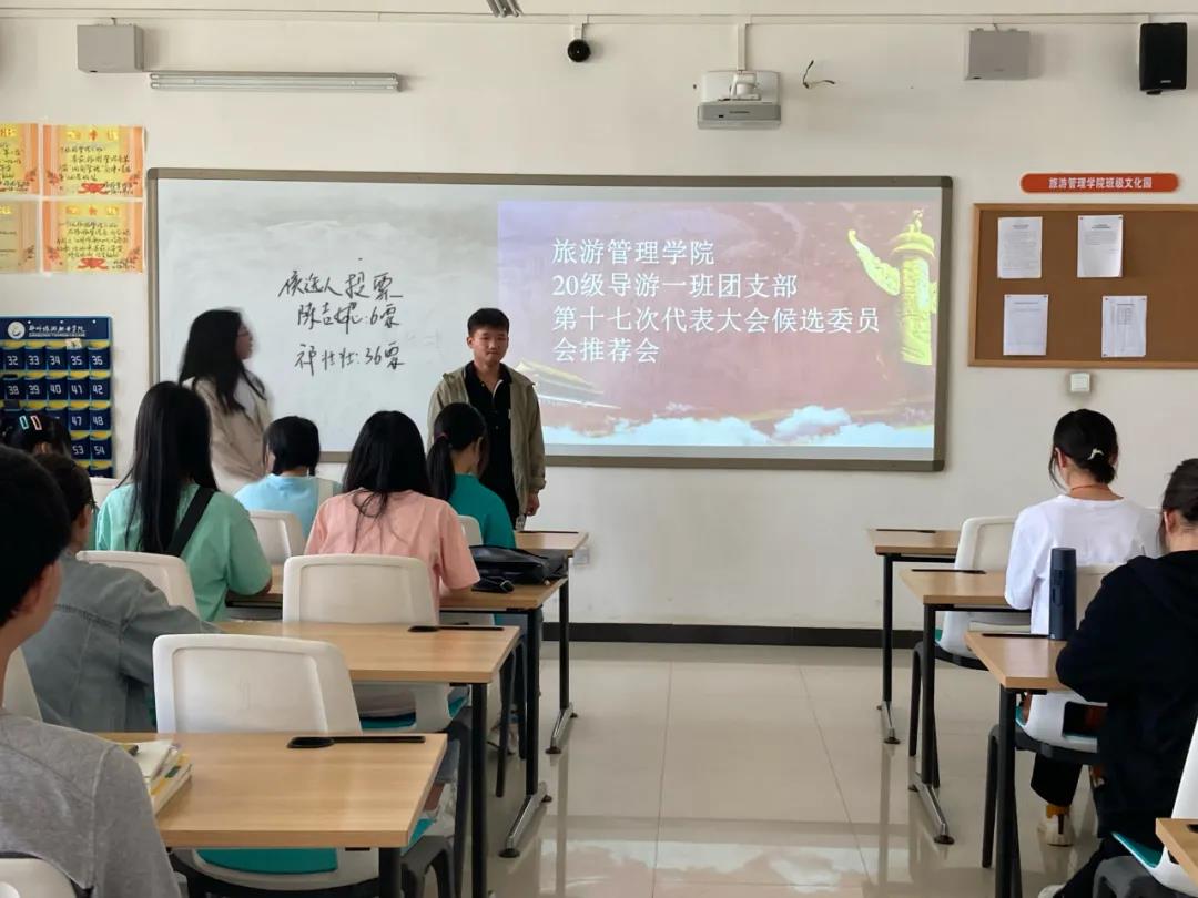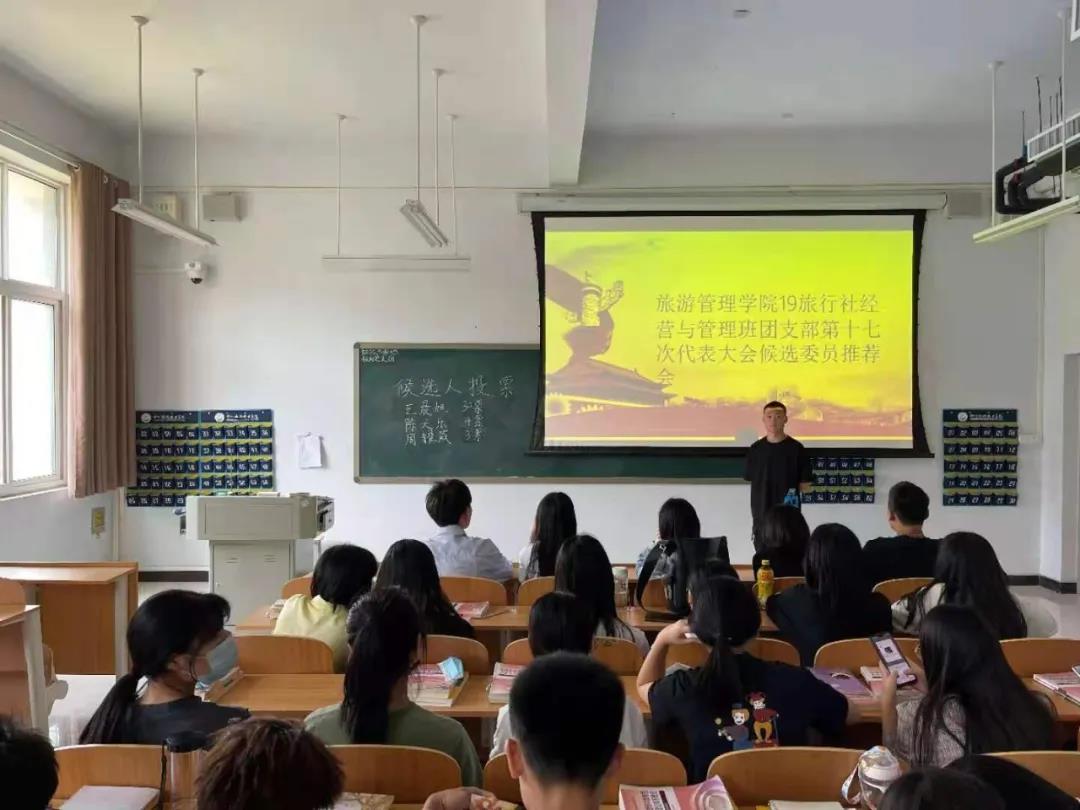5月11日下午,旅游管理学院在各班召开共青团郑州旅游职业学院第十七次代表大会候选代表团支部推荐大会。各班团支书主持召开会议。各班学生参加会议。