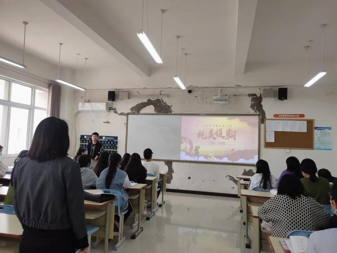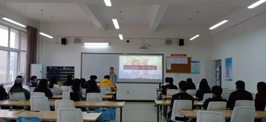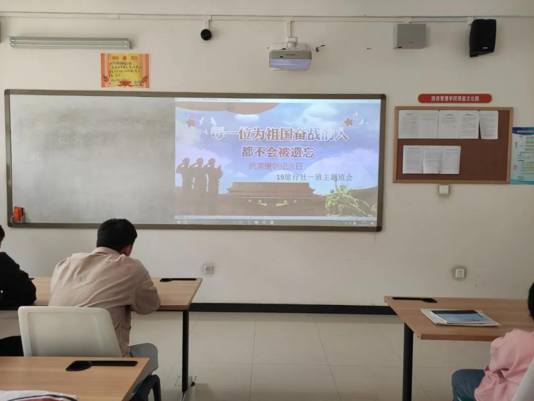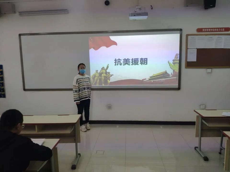 今年是中国人民志愿军抗美援朝出国作战70周年。伟大的抗美援朝战争,抵御了帝国主义侵略扩张,保卫了中国人民和平生活。习近平总书记鲜明指出:“抗美援朝战争伟大胜利,是中国人民站起来后屹立于世界东方的宣言书,是中华民族走向伟大复兴的重要里程碑,对中国和世界都有着重大而深远的意义。”作为新时代大学生,我们对于这样英雄的历史应该有自己的思考,树立正确的思想观念,应该从中认识到自己身上是肩负着怎样的奋斗使命,意识到这个时代需要我们成为怎样的接班人。路漫漫其修远兮,将自己与国家紧紧捆绑在一起,铭记历史,奋勇前进! 为把“三全”育人落实在具体行动中,内化于心,外化于形。旅游管理学院开展弘扬伟大抗美援朝精神主题班会,充分利用“活教材”,努力挖掘思政元素,推进铸魂育人,不断完善“三全”育人格局,努力培养德智体美劳全面发展,具有家国情怀、创新精神、国际视野,担当民族复兴大任的卓越英才。