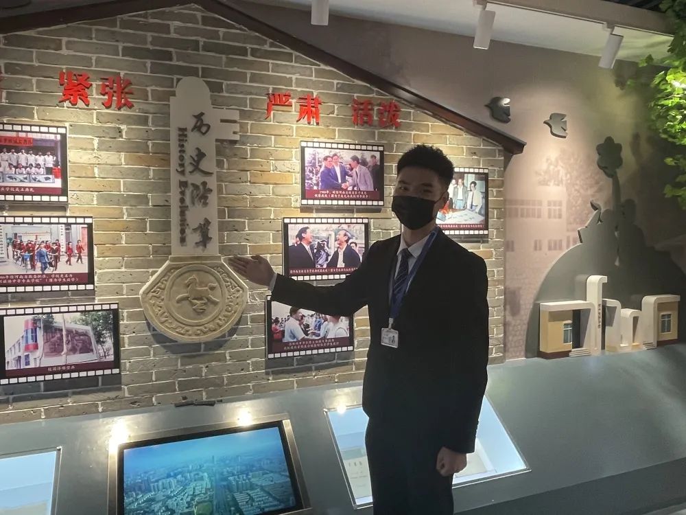 2022年4月12日下午3点,旅游管理学院“豫见美好”讲解队叶洪泼同学为烹饪食品学院学生提供了校史馆的参观讲解服务。