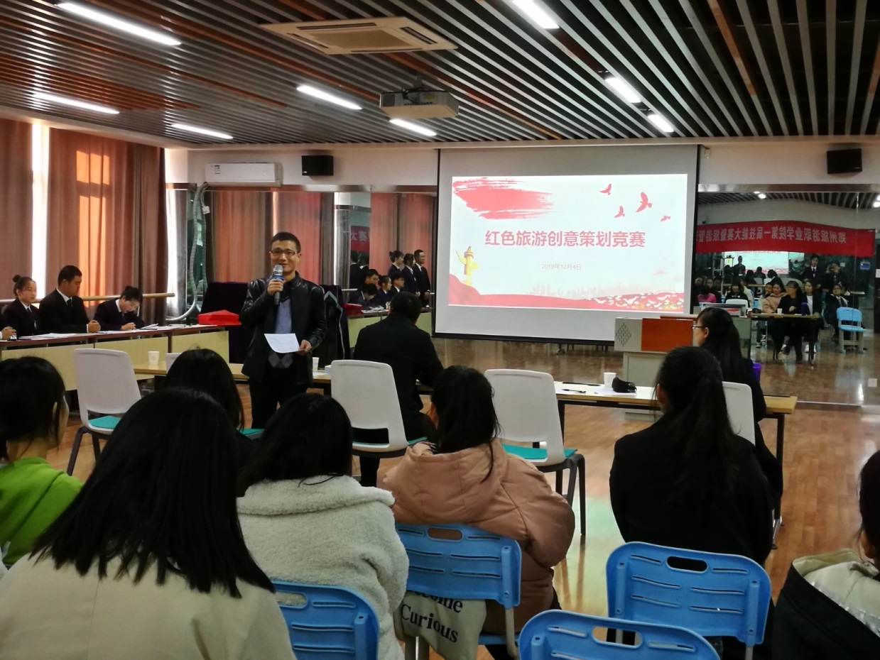 12月4日下午2:00,郑州旅游职业学院第一届红色旅游创意策划竞赛决赛在5号楼A501如期举行。评委老师由绿维创景旅游规划设计院河南分院副院长李会勤、河南汇民金融服务有限公司副总经理邵龙、旅游管理系副主任张楗让、旅行社经营管理教研室主任贾玉芳和专业课教师李霞共同担任。经过初赛和复赛的激烈角逐,共有10个代表队成功进入决赛环节。