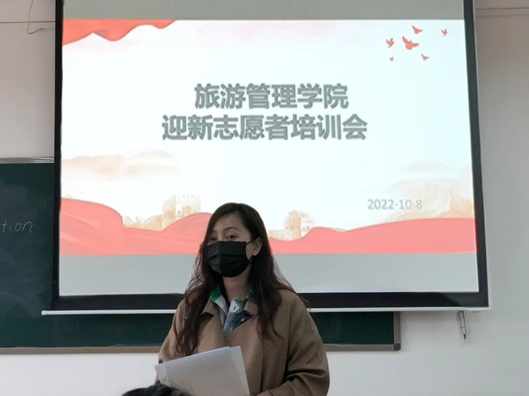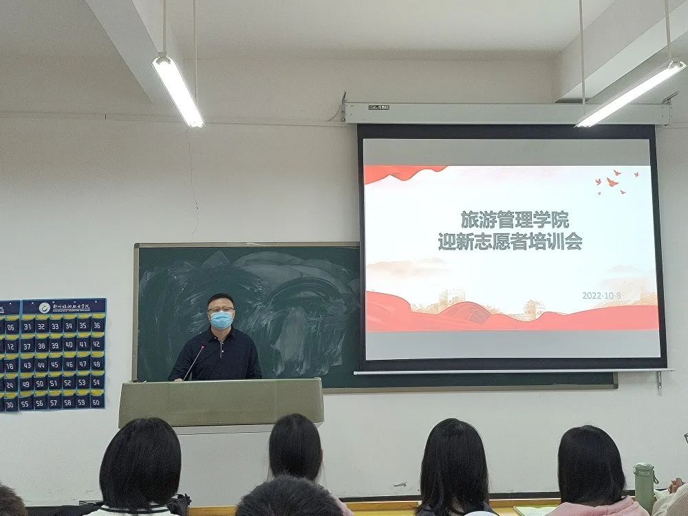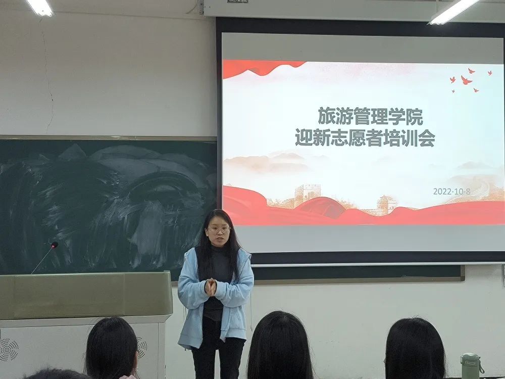 10月8日中午,旅游管理学院2022级迎新志愿者培训会在5A502教室召开。党总支副书记张楗让、团总支代书记张颖出席会议,学院团学干部及迎新志愿者参加会议。会议由辅导员路俊芳主持召开。