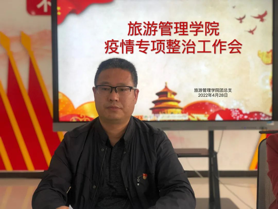 4月28日,旅游管理学院在5号楼党建会议室召开疫情专项工作推进会,学院党总支书记秦合岗、院长李俊及全体党员干部参加了会议,会议由秦合岗主持。