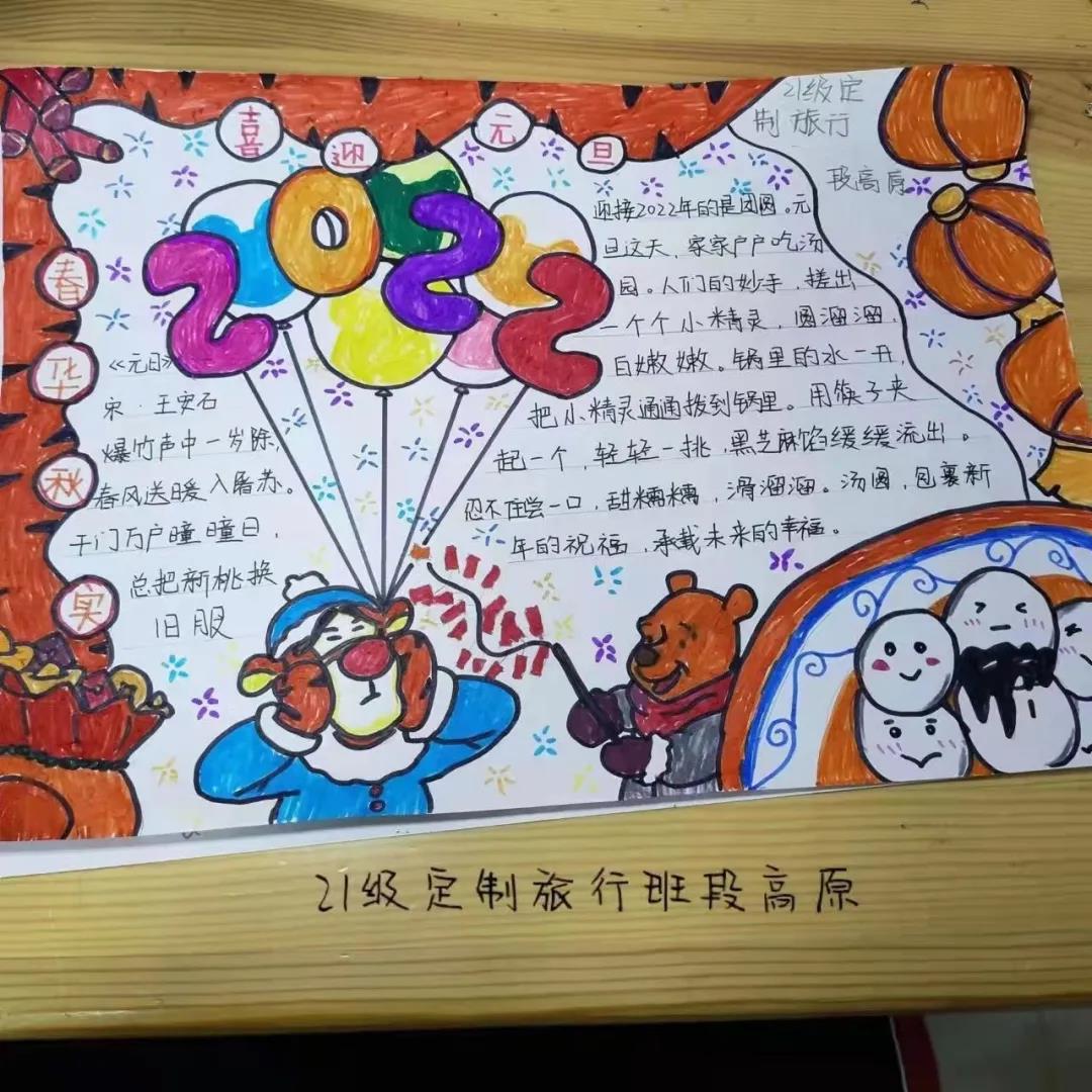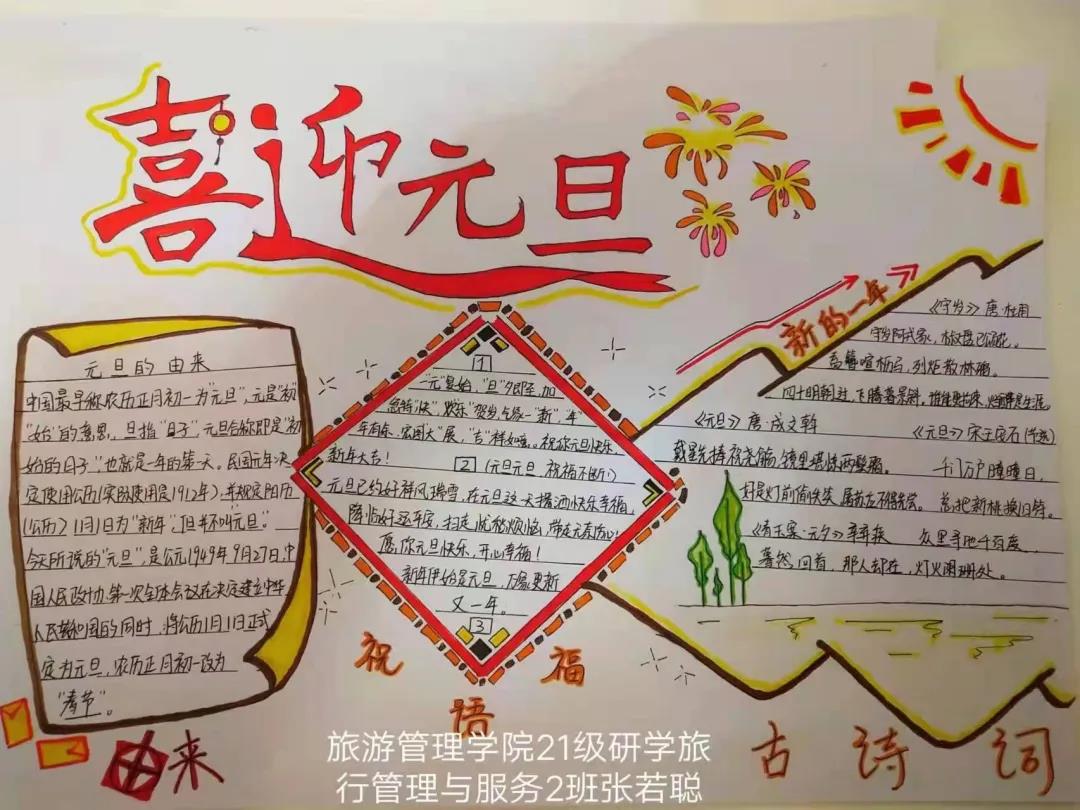 新年伊始是元旦,万象更新换新颜。这一日过后,就预示着2021年的结束,我们即将迎来崭新的2022年。为了鞭策我们以后更努力的学习。同时也为了庆祝这一天,旅游管理学院特于2022年1月1日举行了“春花秋实,喜迎元旦”活动,希望通过该活动来激励同学们迈好新生活的第一步,春华秋实,汗水凝成收获。