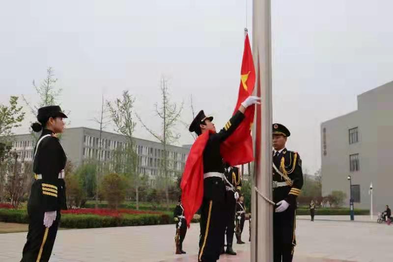 清晨6:50,英姿飒爽国旗护卫队成员迈着整齐划一的步伐,庄严地护送着鲜艳的五星红旗缓缓走向国旗广场,国歌奏响,五星红旗伴随着振奋人心的歌声冉冉升起,点燃了在场学生满腔炽热的爱国之情。