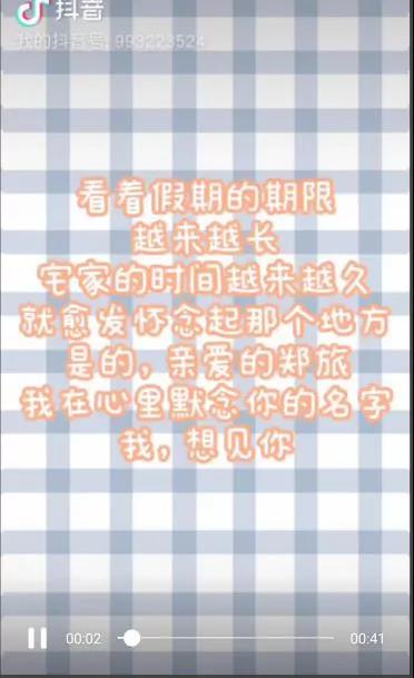 晚上学生发来了她自己制作的抖音视频, 郑旅,在家的日子,是想见你的每一天,我想这也是我们所有旅院人的心声:春暖花开,我们旅院相聚!