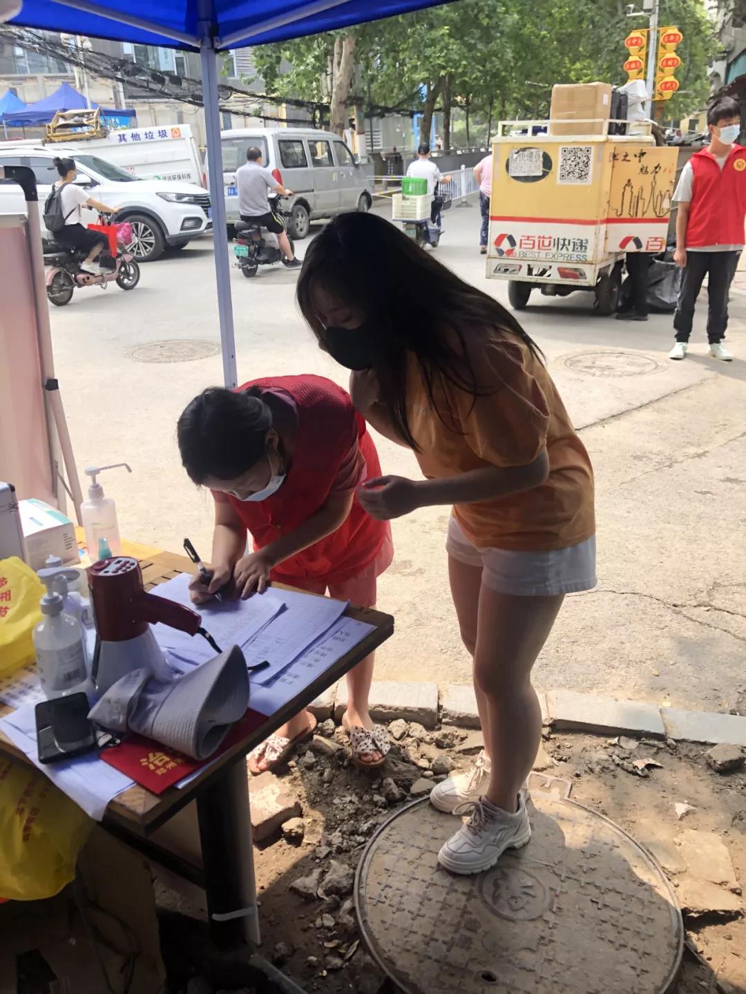在此期间,我遇到了很多跟我年纪相仿的朋友。虽然天气很热 ,蚊子很多,但是我们仍然坚持在岗位,不厌其烦的引导社区居民们进行核酸检测工作。我的主要工作是在卡点值守时,认真、耐心、细致地做好进出人员的证件查验、信息登记、体温测量、环境消杀等。同时,积极地向出入小区的居民,宣传国家疫情防控工作政策,帮助年事已高的居民扫码登记,替不方便拿笔写字的人员登记信息,拦阻不带口罩居民外出,处理居民无理由、不听劝阻、强行闯卡等突发情况。值守期间,即使遇到了极端天气,我仍然坚守工作岗位上,保证值守任务不出纰漏的同时,及时清理卡点周围的卫生。