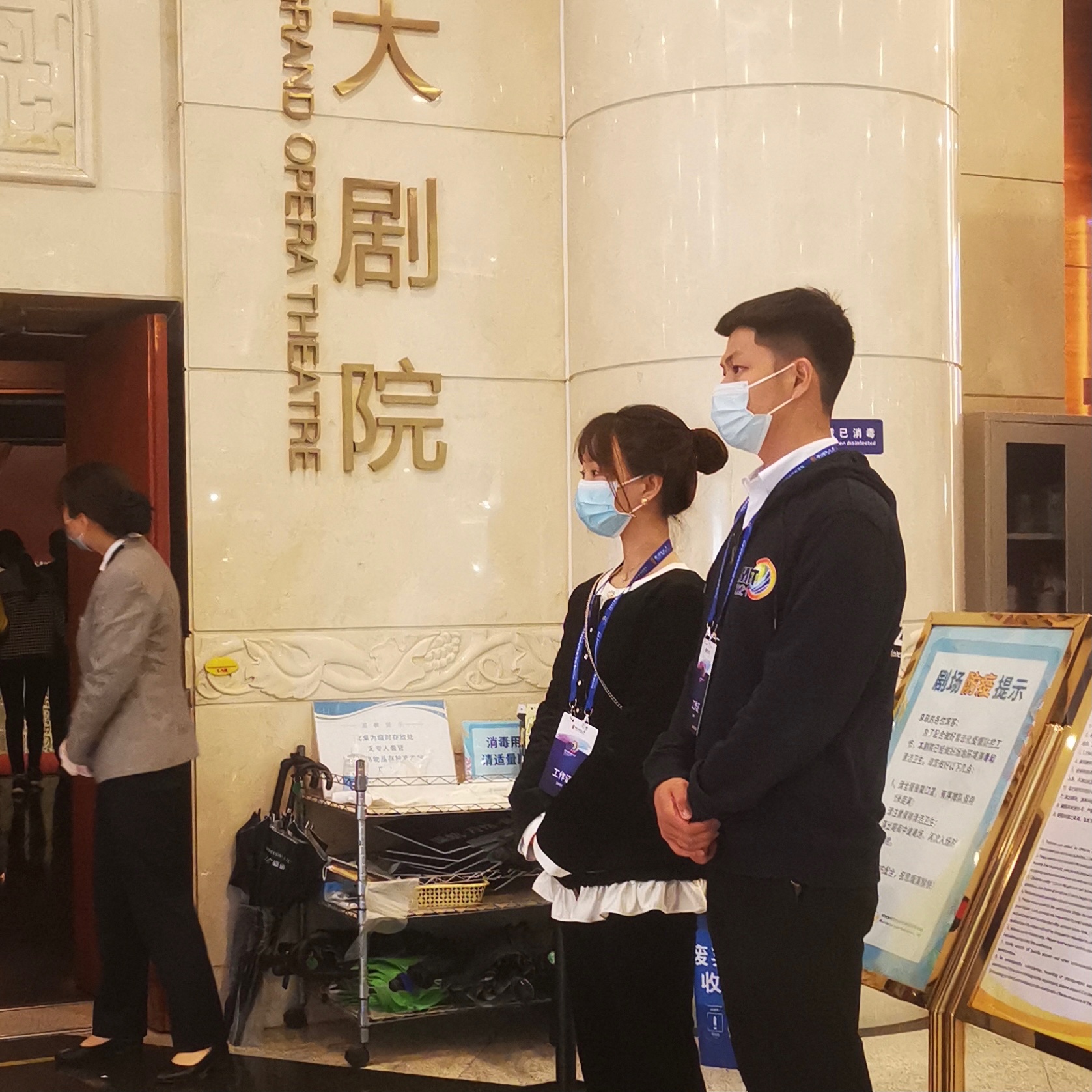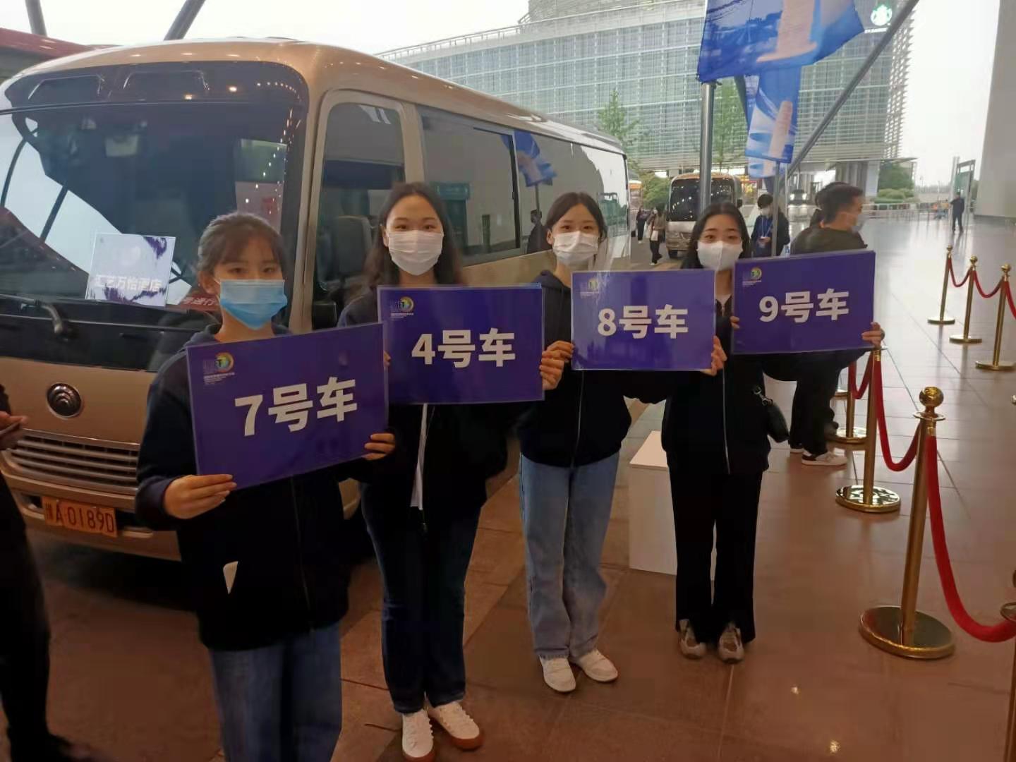 4月20日早上6:00,由带队老师组织志愿者乘坐大巴车到达郑州国际会展中心。根据当日活动日程安排,抵离迎送小组的志愿者前往新郑机场、郑州高铁东站,进行来宾接机服务工作;礼宾接待组分别前往了JW万豪酒店、万怡酒店、伯爵酒店、深航酒店,进行来宾接待指引服务工作;其他小组志愿者参与完成了“郑州之夜”迎宾晚会现场服务工作。