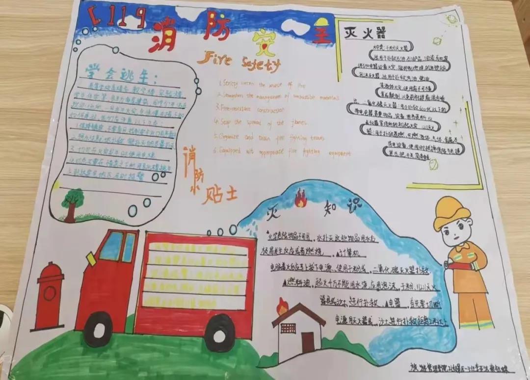 各班级以展报形式积极宣传消防安全知识,采用图文结合、通俗易懂的方式介绍了火灾的危险性、初期火灾的扑救方法,以及发生火灾时如何报警、如何正确使用灭火器等,从不同的角度体现火灾的危险性和消防安全的重要性。