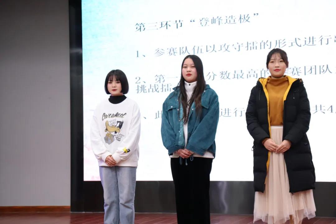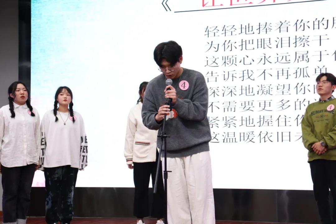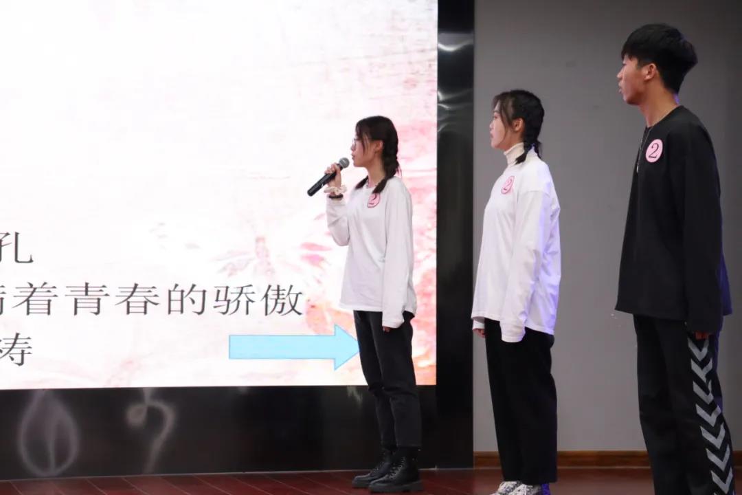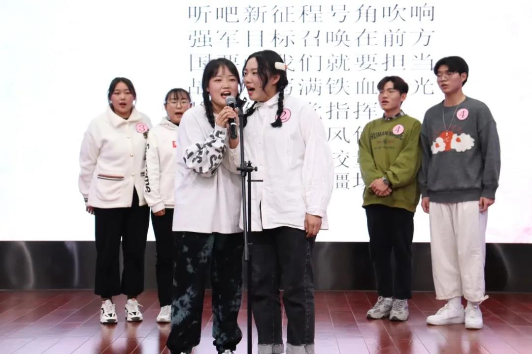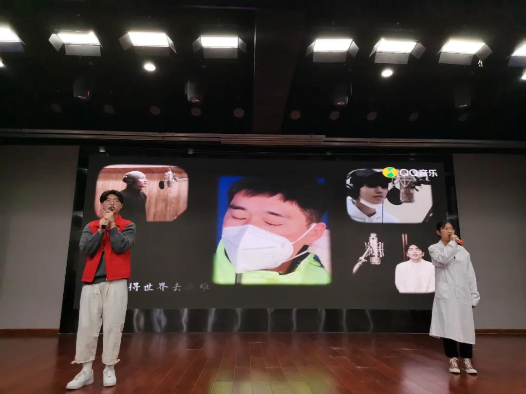 首先,选手们进行一轮热身赛“我是麦霸”。各支队伍通过抢答的方式争取答题资格,现场战况激烈。紧张激烈的热身环节之后,各支队伍正式进入下一轮决赛环节。决赛环节共分为两部分,分别为“洗耳恭听”以及“登峰造极”,各支队伍各展所长,奋勇争先。比赛过程中,参赛选手着装整齐、精神饱满,以满腔的热诚和优美的歌声抒发了对祖国、对党的无限热爱,对父母、师长、社会的感恩之情,尤其是2020级王琛、路京豫同学合唱《保重》和李洋同学独唱《我的祖国》作为每个环节之后的特邀节目引领在场师生歌唱祖国,为祖国献礼,将现场的气氛推向高潮!
