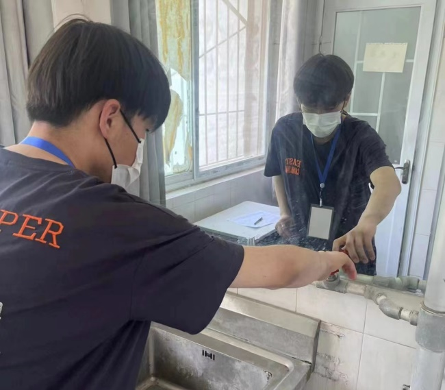 开展安全卫生检查重点内容包括对教学楼门窗、消防设施、电线电路等检查,宿舍是否都切断电源、关好门窗、做好卫生,是否存在消防安全隐患问题。检查过程中发现,教学楼部分安全指示灯损坏,墙皮脱落,心安部成员发现问题及时的进行了处理,消除了安全隐患。宿舍区域内大部分学生能认真执行学院宿舍安全管理规定要求,宿舍布置温馨,物品收拾整齐,做到文明离校;个别宿舍存在未关电源、未关门窗的情况,生活部及时进行了整改和教育。同时,做好了相关的离校情况记录工作,及时确认学生是否安全到家,始终将学生的安全摆在首位。