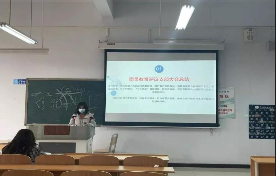 为深入推进共青团改革,切实增强团员的先进性和光荣感,提高团员素质、强化团员意识,严格落实“三会两制一课”制度,进一步加强共青团组织建设。学院全体班级团支部于2021年12月15号下午15:00在5B教学楼召开2021年团员评议支部大会。大会在各班级团支部奏唱团歌《光荣啊,中国共青团》中进行,首先由各班级团支部书记对班级团支部在一年中的工作进展做出了总结,并向大家讲述了评议标准。接下来各班级团支部评议团员依次进行发言,对自己在过去一年的学习及工作进行了讲述,总结了自己的不足并提出下一学年的努力方向。最后由各班级团支部书记对本次大会做出总结,并对接下来的工作提出了新的期待与要求。此次团员评议支部大会的顺利召开,充分调动团员们的积极性,进一步加强每名团员对自己的身份认知。通过此次大会,团员们总结过去一年的成长,同时对未来进行展望,在今后工作中继续努力,为下一阶段班级团支部的工作与建设打下坚实基础。