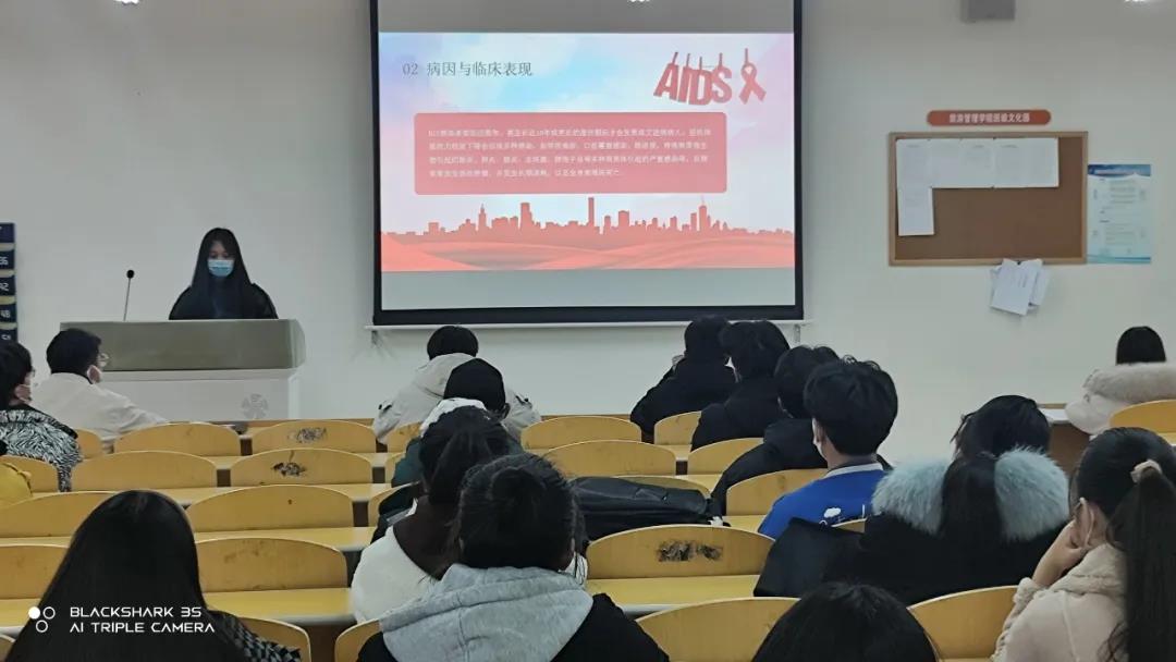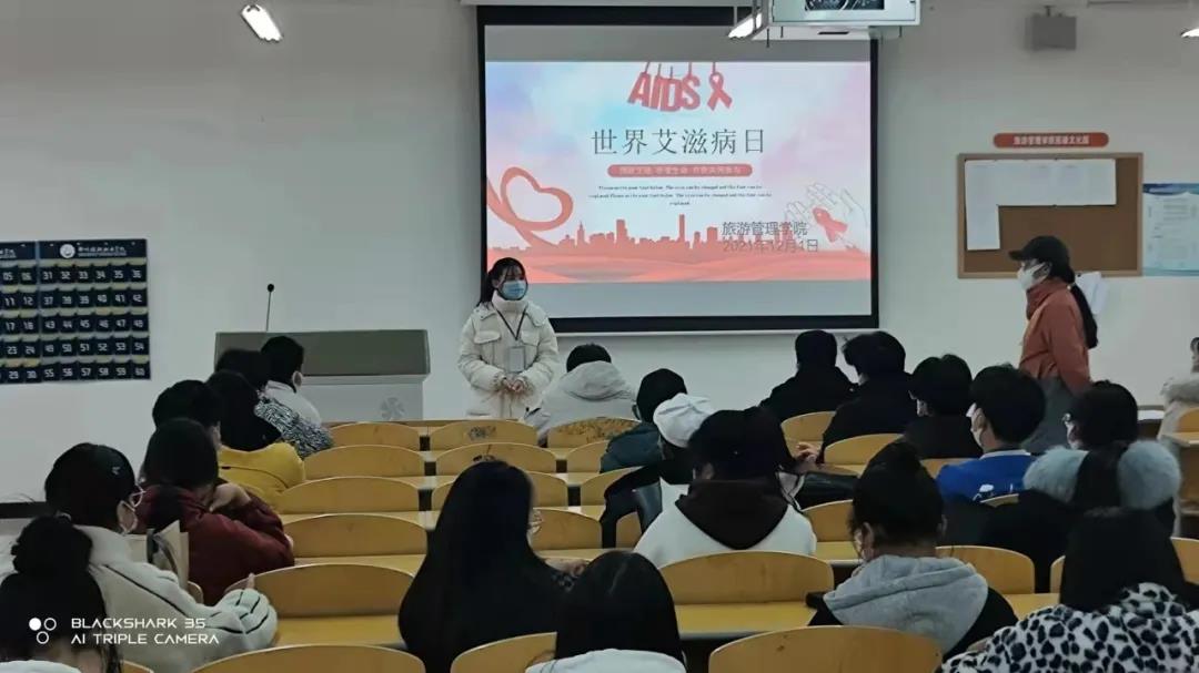 12月1日,旅游管理学院组织开展了关于大学生艾滋病防疫科普知识的“倾听艾,拥抱艾”主题活动。本活动以宣传艾滋病的预防为主,通过现场的讲解来增加同学们对艾滋病的认识和关注,让同学们懂得如何远离艾滋病毒和珍爱生命,也让他们知道怎么去对待艾滋病患者。消除对艾滋病病人和感染者的歧观,积极动员身边的人参与到艾滋病预防、控制和关爱艾滋病人的活动中去。