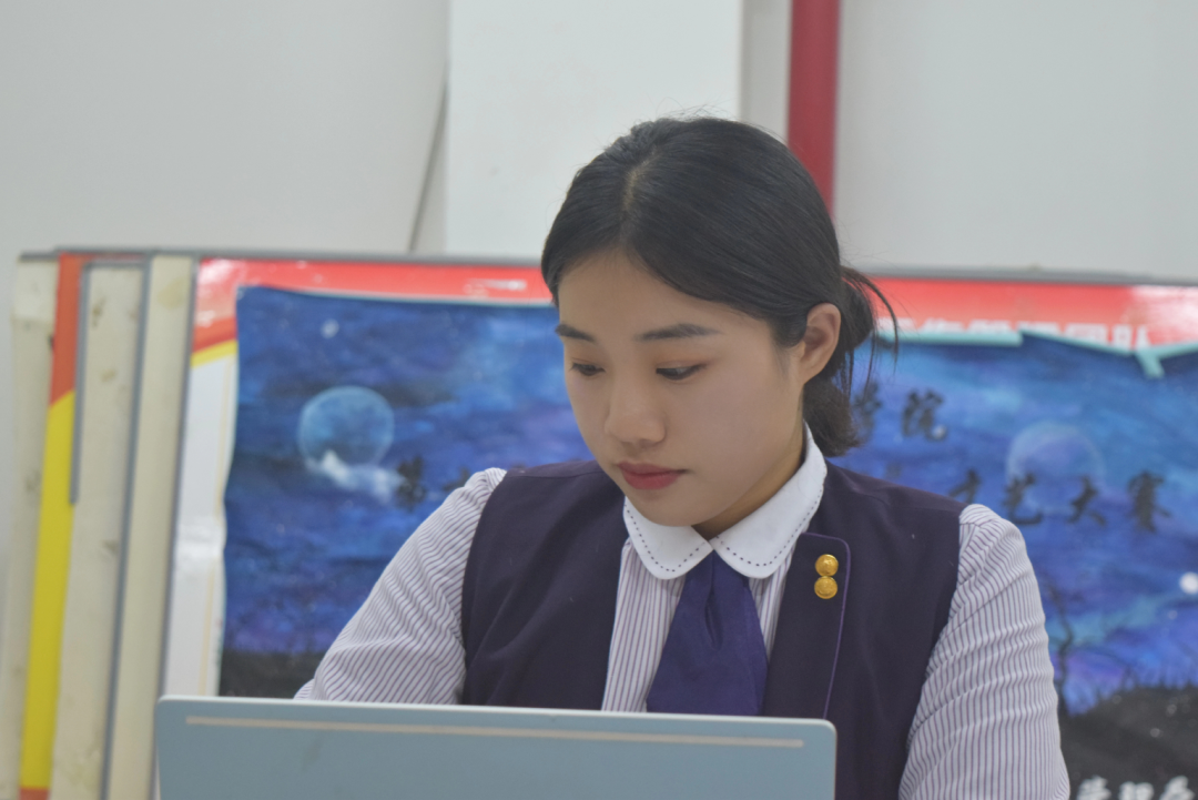 在工作期间,她始终以“服务老师,联系同学”为宗旨,真正做到为同学们服务。所谓干一行爱一行,对部门工作认真负责的同时她还积极的参加学校的各种活动来提高自己的实践能力,工作之余也经常自觉扩展自己各方面的知识。