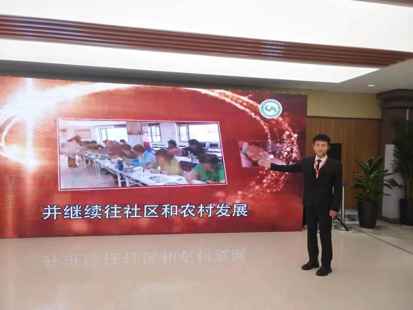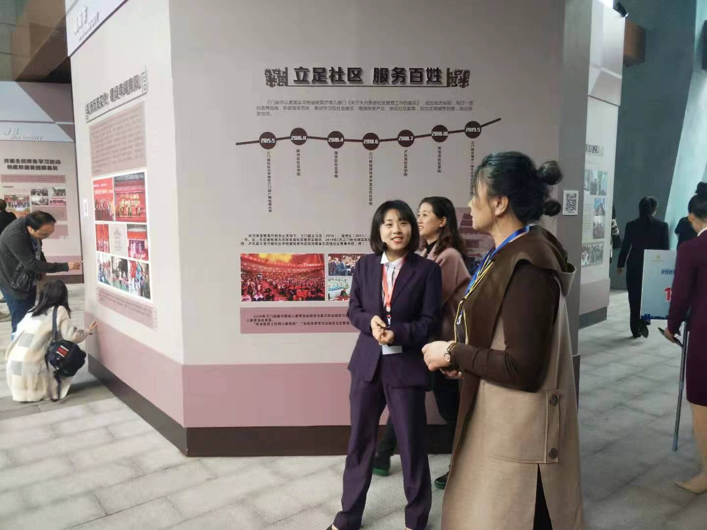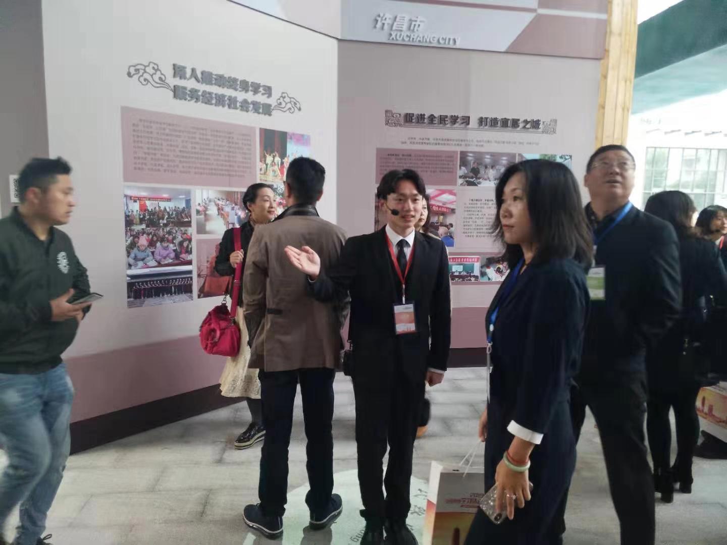 2019年全民终身学习活动成果展,共分室外室内两大展区,共有“河南省全民终身学习成果——学习,让中原更出彩!”、“郑州市全民终身学习成果展——办好大教育,服务大郑州”、“郑州市社区教育特色活动展示——美好生活源于美好教育”等九个模块。我系20名优秀学生全程参与了室内外展区九个模块的讲解工作。室外展区分布在主会场明理学堂前面的广场,室内展区分布在主会场明理堂二楼。我系优秀学生以饱满的精神状态迎接来自各个单位的与会人员,为他们详细讲解了河南省全民终身学习成果、郑州市全民终身学习成果、郑州市社区教育特色活动和郑州市非遗文化项目、全国全民终身学习资源、人物、品牌、继续院校、摄影作品等,得到在场人员一致好评,彰显了我系学子良好的精神风貌及优秀的专业技能。