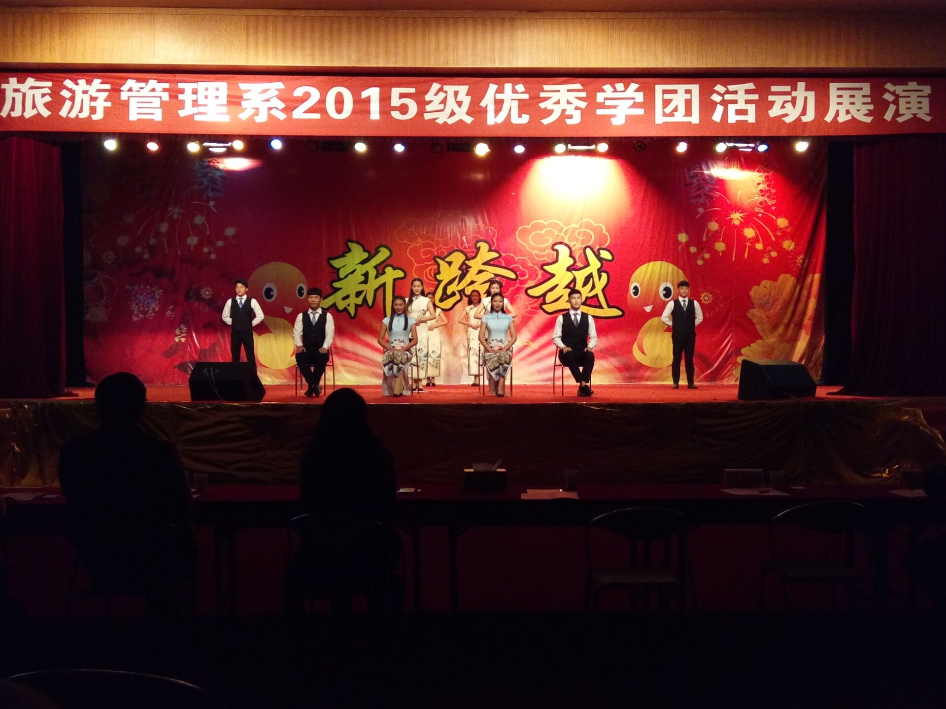 为了弘扬我系优秀系部文化,展现同学们积极向上的精神风貌,旅游管理系于2016年11月15日16:00在我院三楼礼堂举行了旅游管理系第十一届旅游艺术节开幕式暨2015级优秀学团活动展演的活动。应邀出席开幕式的领导和嘉宾有院长樊豫陇教授、院团委书记李立功、学生处副处长朱世杰、我系党总支书记兼主任肖靖、副主任张楗让、团总支书记金慧慧及我系全体教职工。
