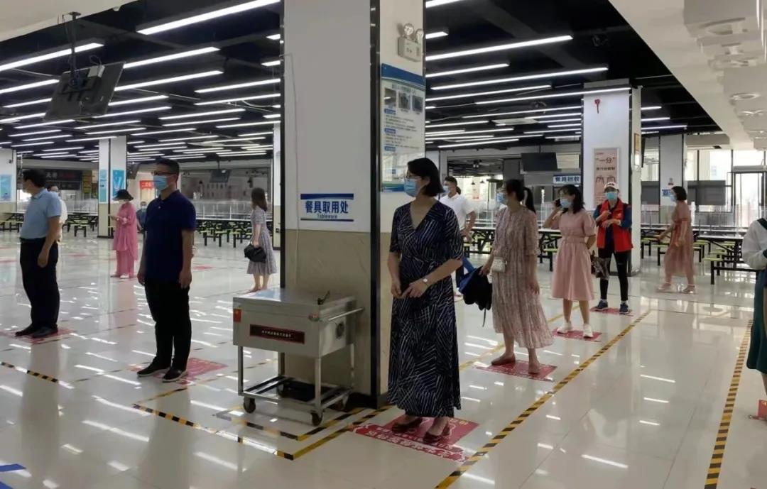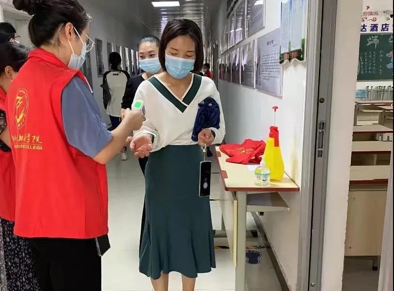本次演练顺序依次为入校场景、教室场景、食堂就餐场景、宿舍场景。参与演练的教师依据各自角色职责在佩戴口罩、做好防护的前提下依据学校疫情防控演练方案流程进行演练,保持1—1.5米距离,重点演练了在不同场景下学生出现体温异常时的处置流程。