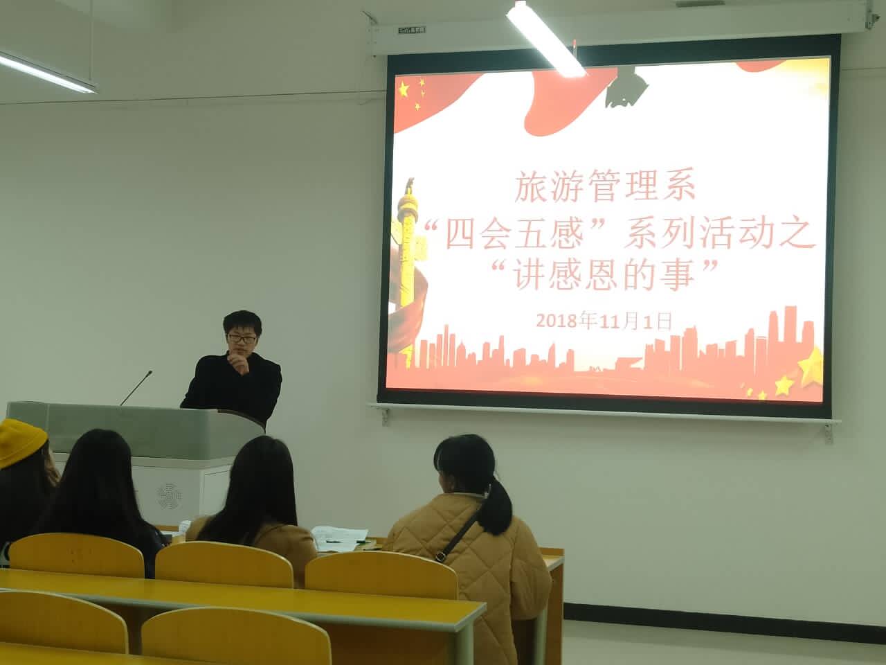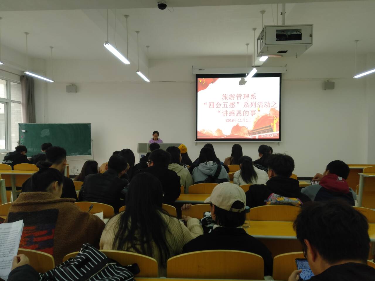 11月27日下午3点,我系在5号楼A座504教室开展四会五感活动。活动由团总支学生干部主持。各班学生代表参加活动。