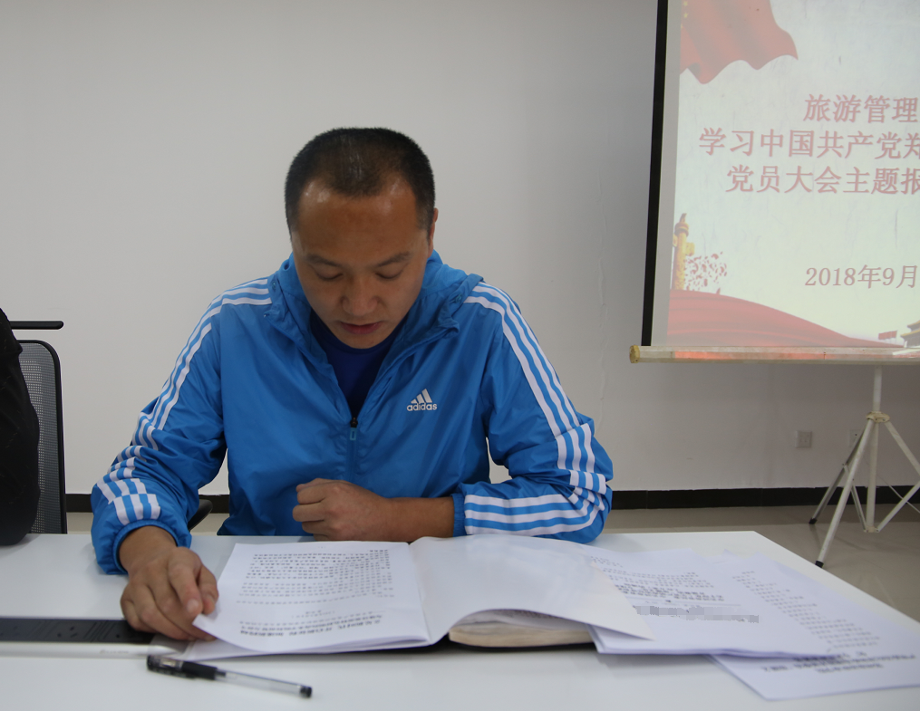 9月19日下午2:00,我系党总支在5号楼4楼会议室学习中国共产党郑州旅游职业学院党员大会主题报告及会议精神,党总支书记、主任肖靖,副主任秦合岗、张东月、张楗让,党总支副书记张笃川,以及全体党员参加会议。会议由肖靖主持。