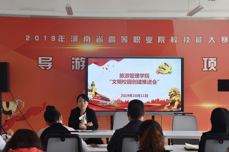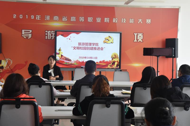 10月11日下午13时,旅游管理学院于4楼会议室召开文明校园创建推进会。本次会议由我院党总支书记肖靖主持,我院全体教师参加此次会议。