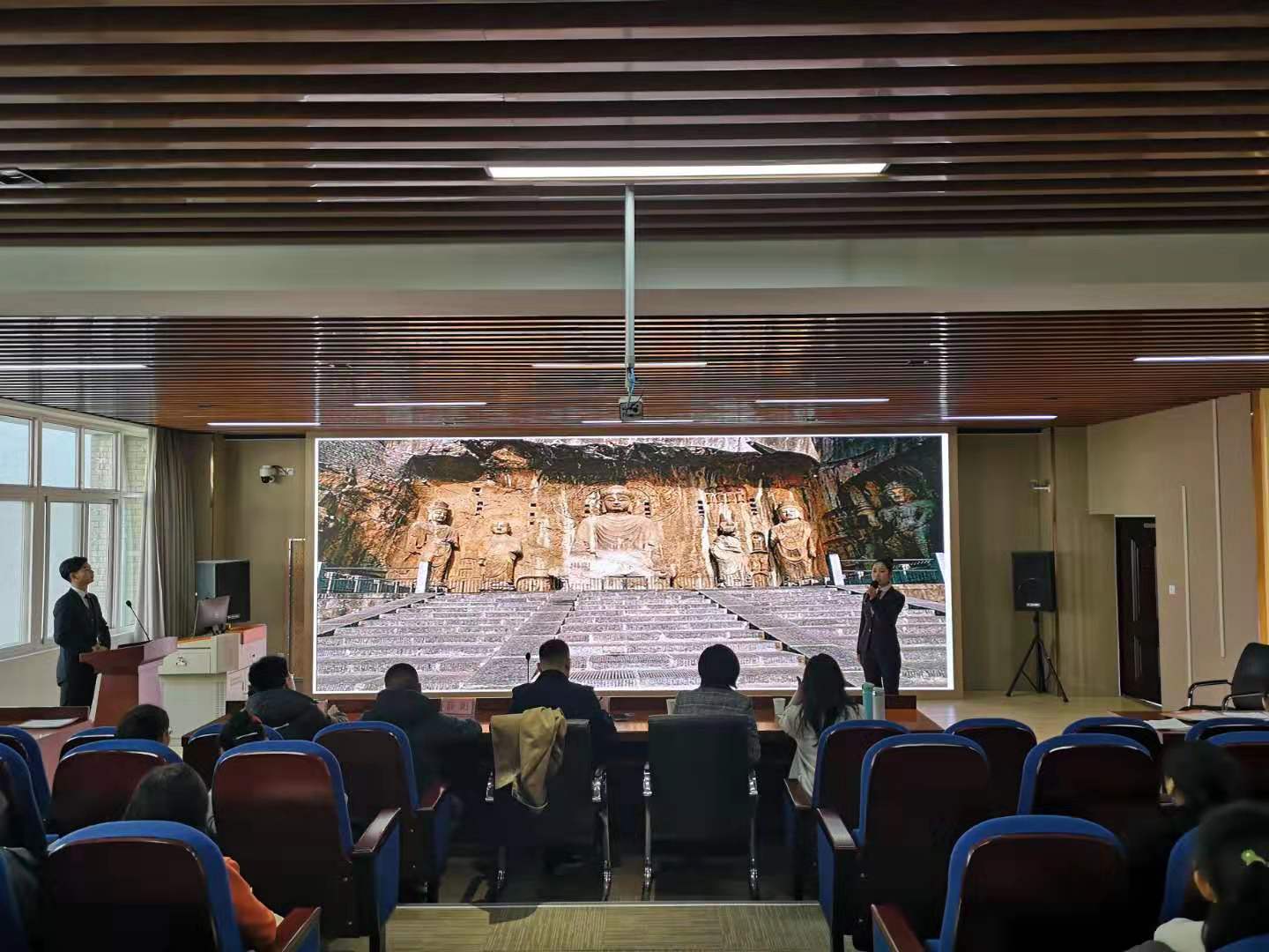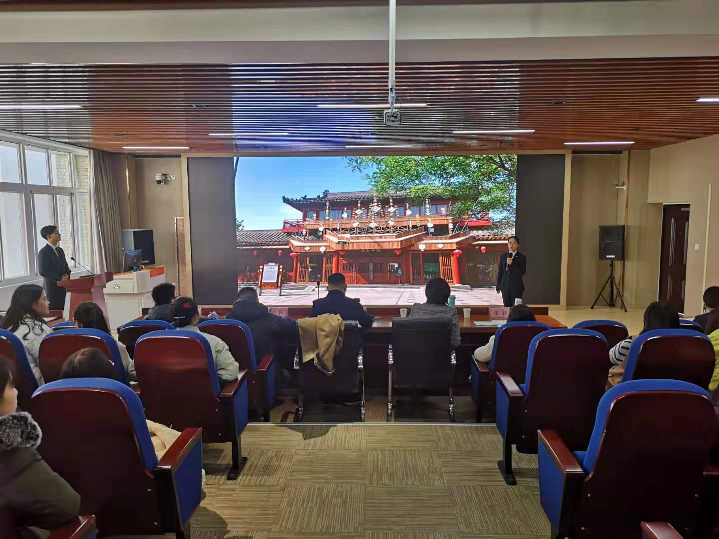 2019年12月4日下午两点,郑州旅游职业学院第一届学生专业技能大赛(导游服务赛项)决赛在旅游管理系5号楼云景点实训室举行。