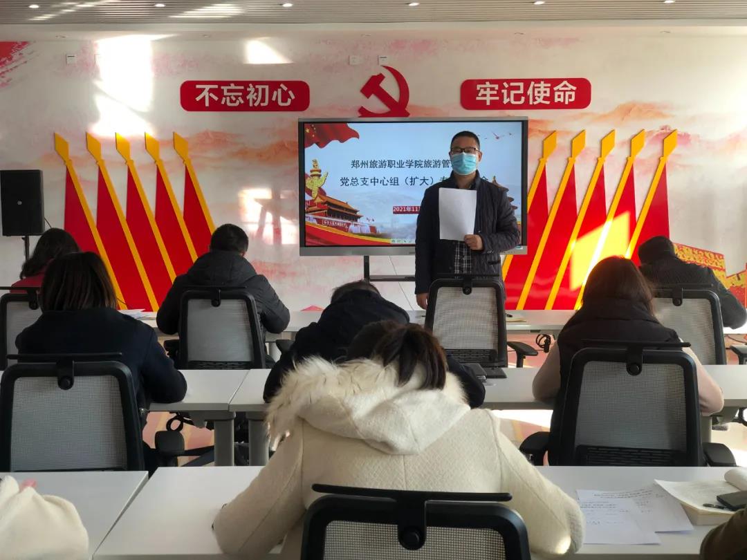 2021年11月10日,旅游管理学院党总支书记秦合岗主持召开党总支中心组(扩大)专题学习会,传达学习中国共产党河南省第十一次代表大会精神,并就贯彻落实好会议精神进行安排部署。旅游管理学院全体党员参加会议。