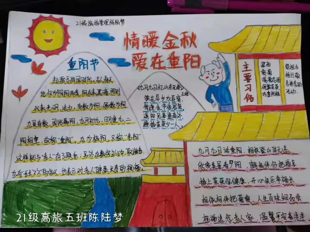 “百善孝为先”是我们中华民族的传统美德,作为炎黄子孙,自然应当继承传统、弘扬传统。为进一步营造敬老、亲老、爱老、助老的社会风尚,引导广大青年学会感恩,树立良好的家庭美德观念,增强广大青年的社会责任感。我院于2021年10月12日开展“庆九九重阳节,展学生风采”的活动。