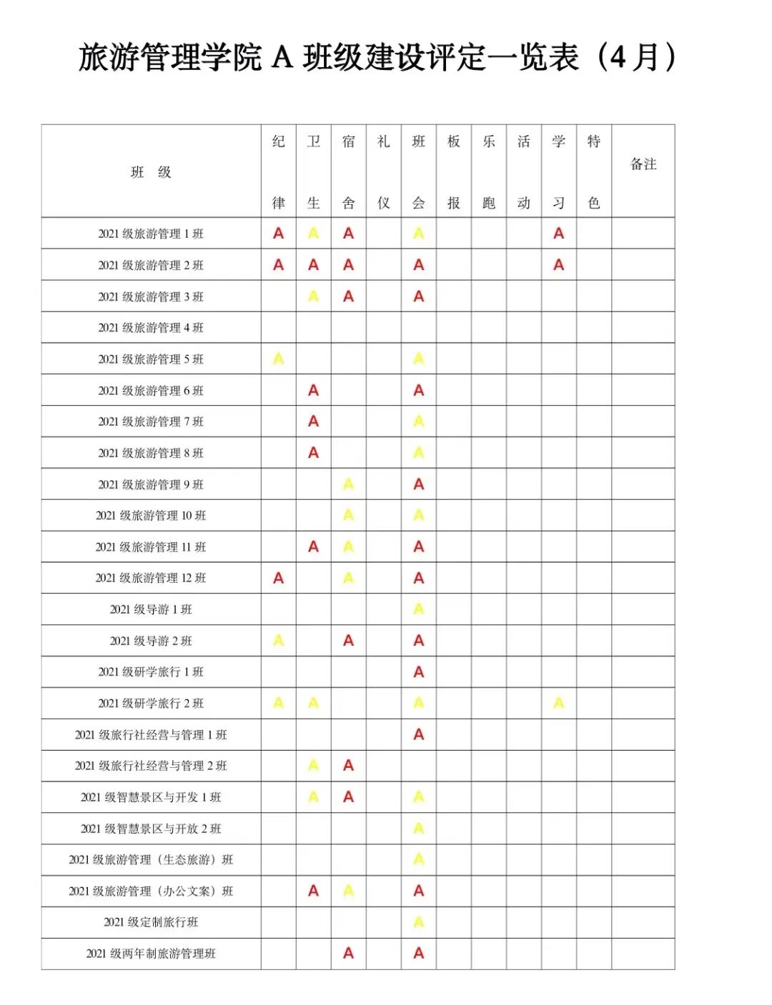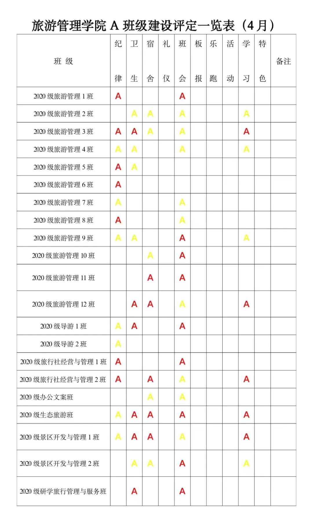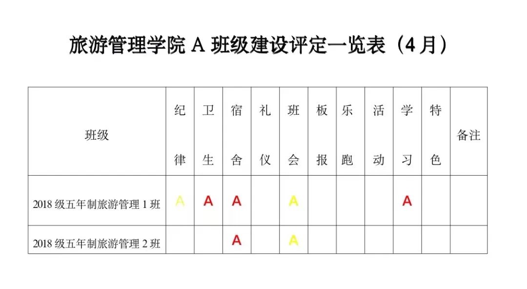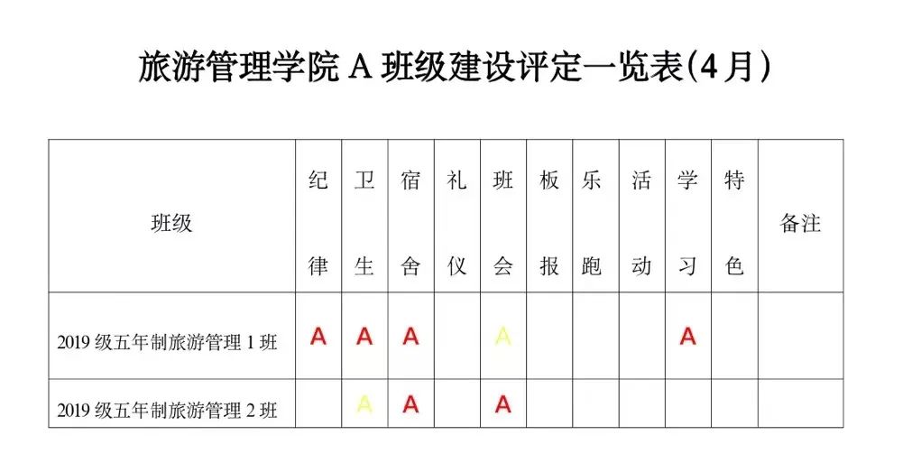 为进一步深化学院“三全育人”综合改革试点工作,贯彻学院“三全育人”工作要求,实现全方位育人。全面促进学生“三素养”教育不断提升,坚持立德树人,把培育和践行社会主义核心价值观落到实处;为培养学生的责任感、荣誉感、合作意识、奋斗意识和竞争意识,激发学生进取心,坚持以学生为本,把正能量融入学生教育、管理和服务的全过程。经研究,结合校院实际,参照A级景区评定规则,实施A级班级建设评定标准,由以往的上墙授牌转变为每月用微信公众号的方式推送,使学生学有榜样、赶有方向、比有对手、追有目标,为校院的可持续发展注入新动力!