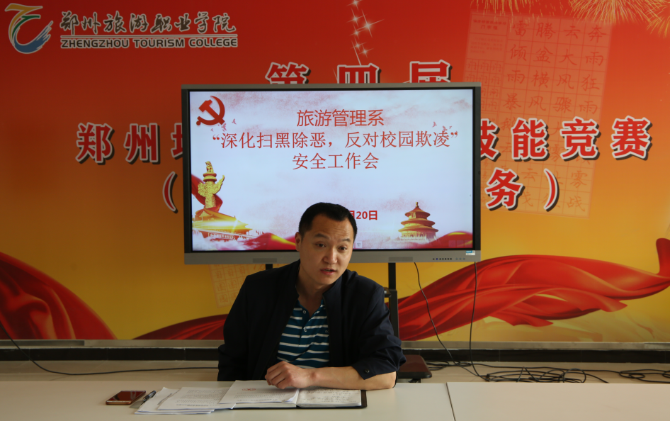 3月20日下午13:30,根据学院安全工作会议精神,按照《郑州旅游职业学院校园欺凌专项治理实施方案》通知要求,我系在5号教学楼四楼会议室召开了“深化扫黑除恶,反对校园欺凌”专题会议。会议由党总支副书记张笃川主持,全体辅导员参加会议。