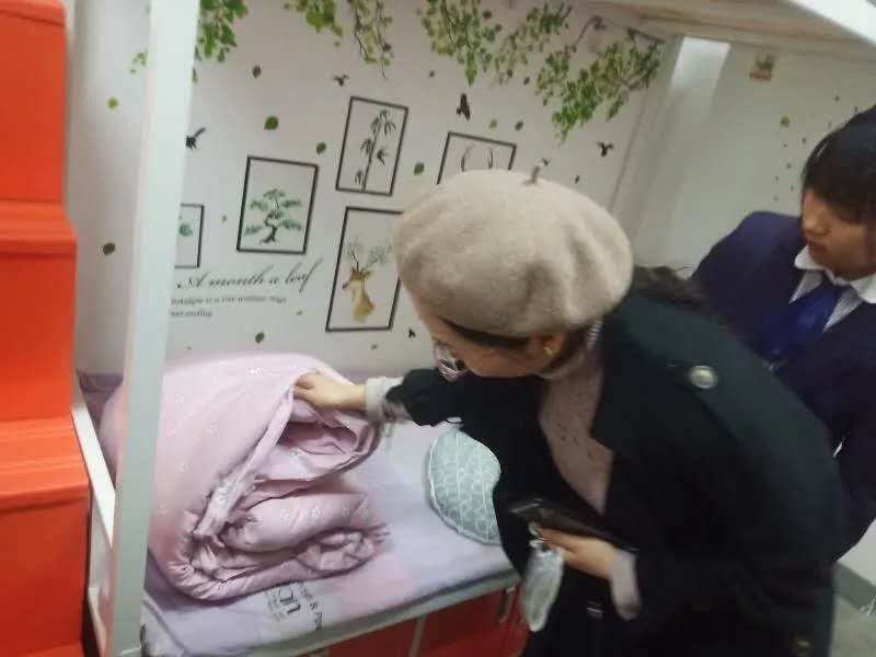 为进一步巩固宿舍“全域标准化”常态化,强化“四自管理”,持续提升“三素养”教育,夯实文明意识行为习惯,为学生全面发展,成人成才搭建平台!经过酝酿筹备,班级申报,院部综合评定男生标杆宿舍4A122 、4A123、4A210 、4A226;女生培训楼205 、1B160 、1A127、1C244,为本次的公寓标杆样板间。本次现场会以宿舍标杆样板间为案例进行了宿舍“全域标准化”常态化学习观摩现场交流。参观学习公寓标杆样板间,学习“十六字”标准(外高里低、中轴对称、叠摆扫带、箱子上柜),做到“六”干净(面盆擦洗干净(用钢丝球),便池清理干净(马桶刷),地面扫拖干净,镜子擦洗干净,门窗清理干净,墙壁保持干净)。会前,首先由张凯迪老师强调说明召开本次现场会的重要意义。会中,辅导员老师以及样板间宿舍长就宿舍内生活用品摆放、卫生死角、张贴物、床铺整理、鞋子摆放等几个方面,与大家分享、沟通、交流。