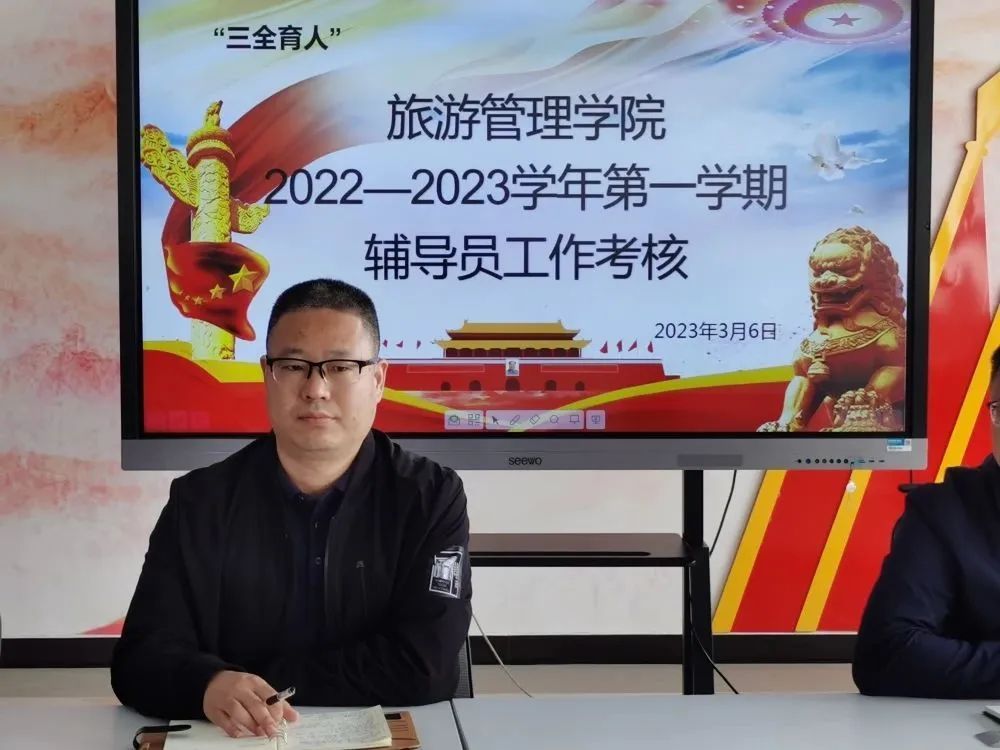 3月6日上午,旅游管理学院2022——2023学年第一学期辅导员工作考核会在5号楼党建馆召开。旅游管理学院党总支书记秦合岗、党总支副书记张楗让、团总支代书记张颖以及全体专兼职辅导员参加会议。会议由张楗让主持。