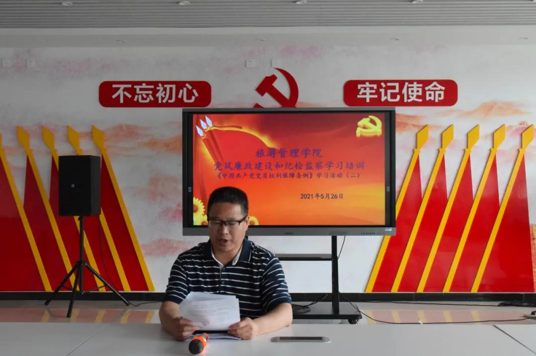 5月26日下午,旅游管理学院党风廉政建设和纪检监察学习培训会暨《中国共产党党员权利保障条例》学习活动(二)在党史文化馆召开。党总支书记秦合岗出席会议。学院全体党员参加会议。会议由秦合岗主持。