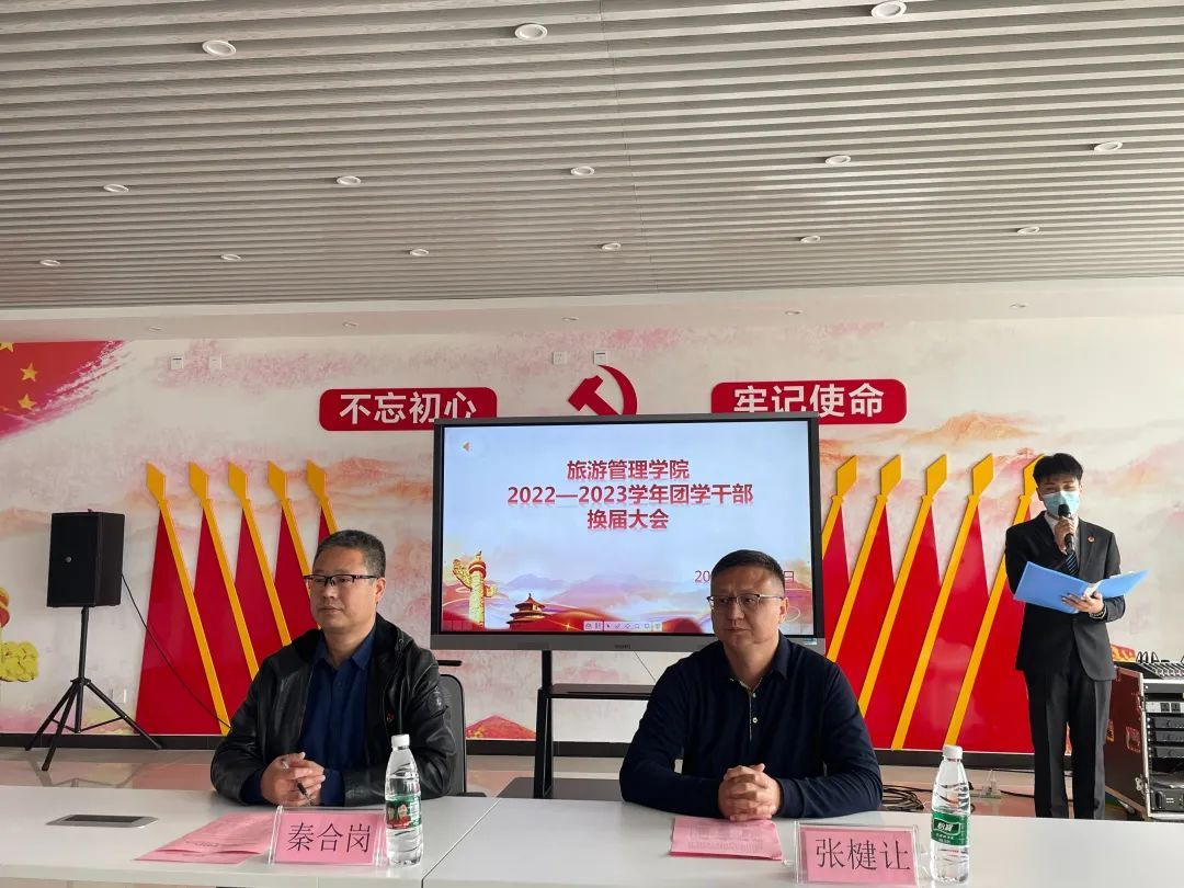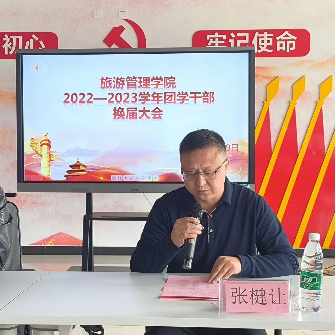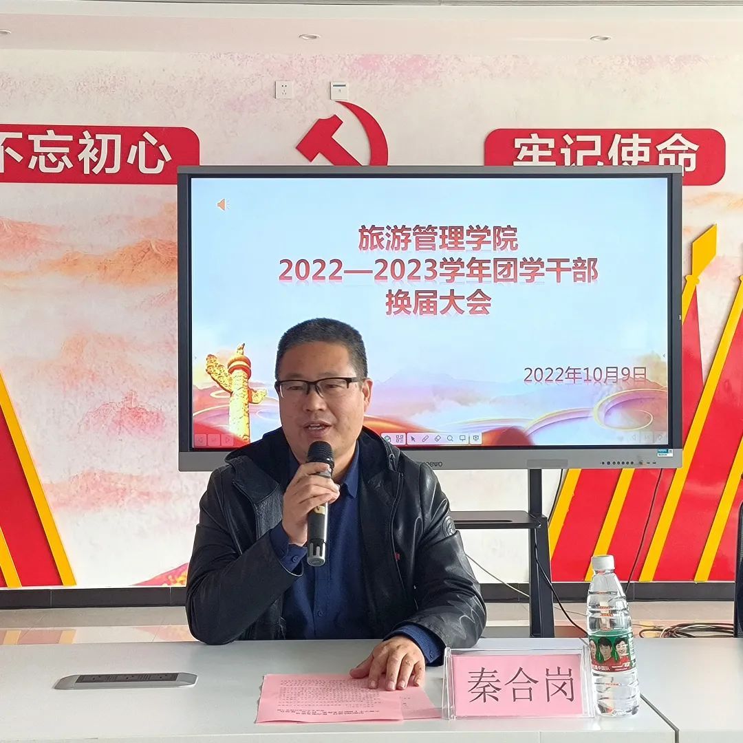 10月9日中午,旅游管理学院2022—2023学年团学干部换届大会在5号楼党建馆顺利召开。学院党总支书记秦合岗、党总支副书记张楗让出席会议,学院全体专职辅导员、辅导员助理、新一届团学干部参加会议。会议由学生张云朋主持。