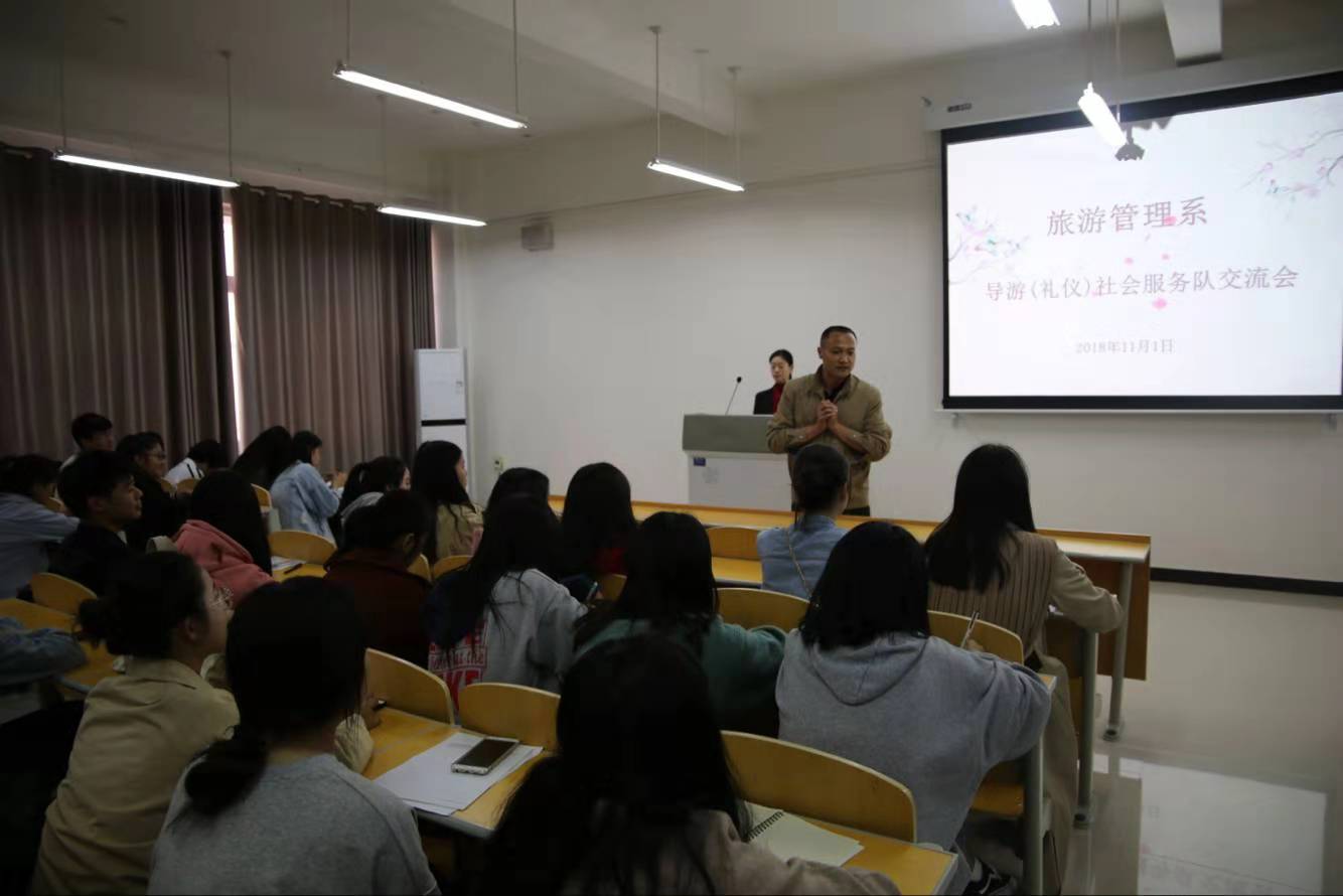 11月1日下午3点10分,我系在5号教学楼A座406教室召开导游礼仪社会服务队交流会,党总支副书记张笃川,负责人戚丁钒参与会议,会议由张笃川主持。