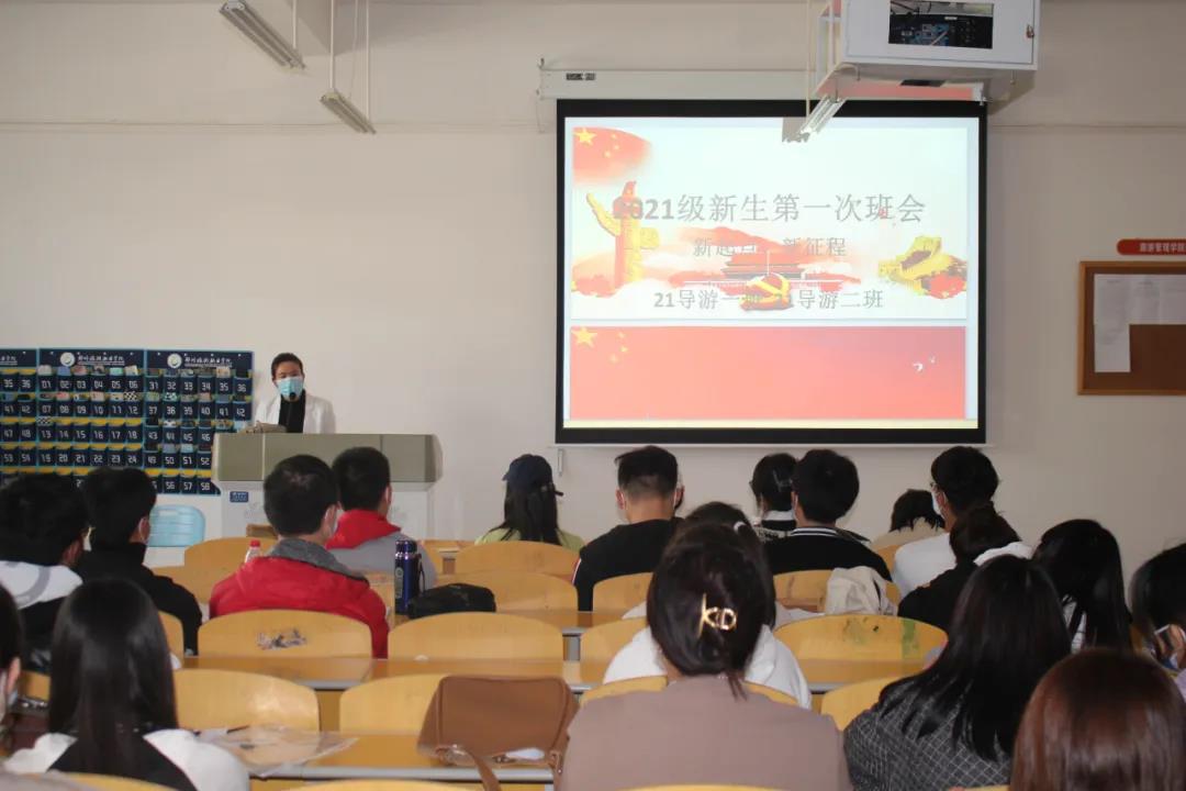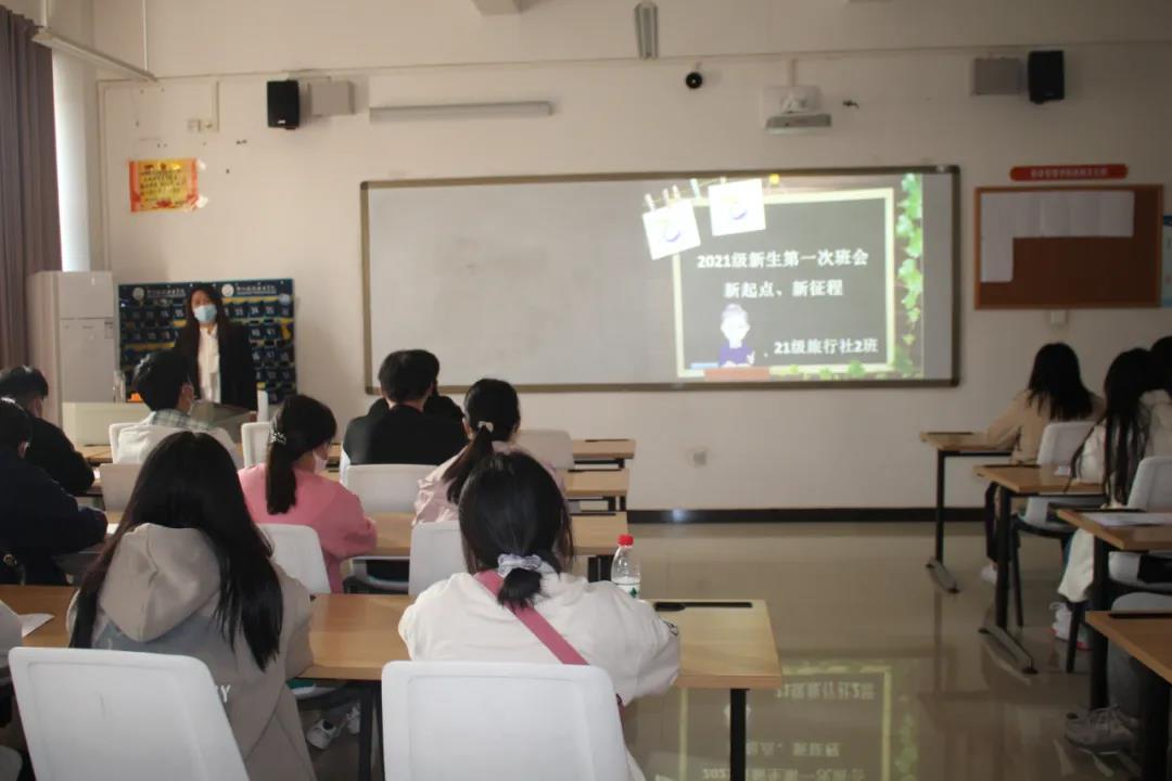 10月30日下午,旅游管理学院21级新生入学教育主题班会在5号教学楼召开。班会由各班班主任主持召开,辅导员、带班学长以及各班新生参加班会。主题班会主要围绕常态化疫情防控、专业认知、爱校荣校、安全纪律、行为规范、文明礼仪等方面展开。