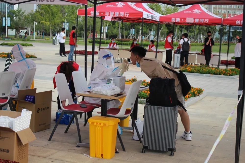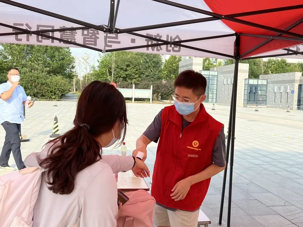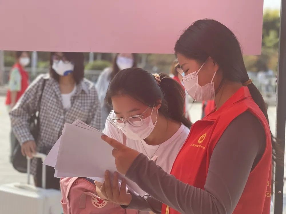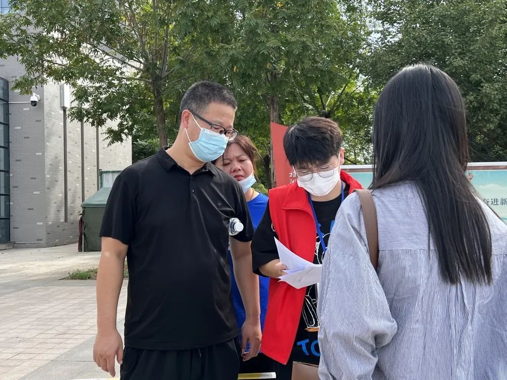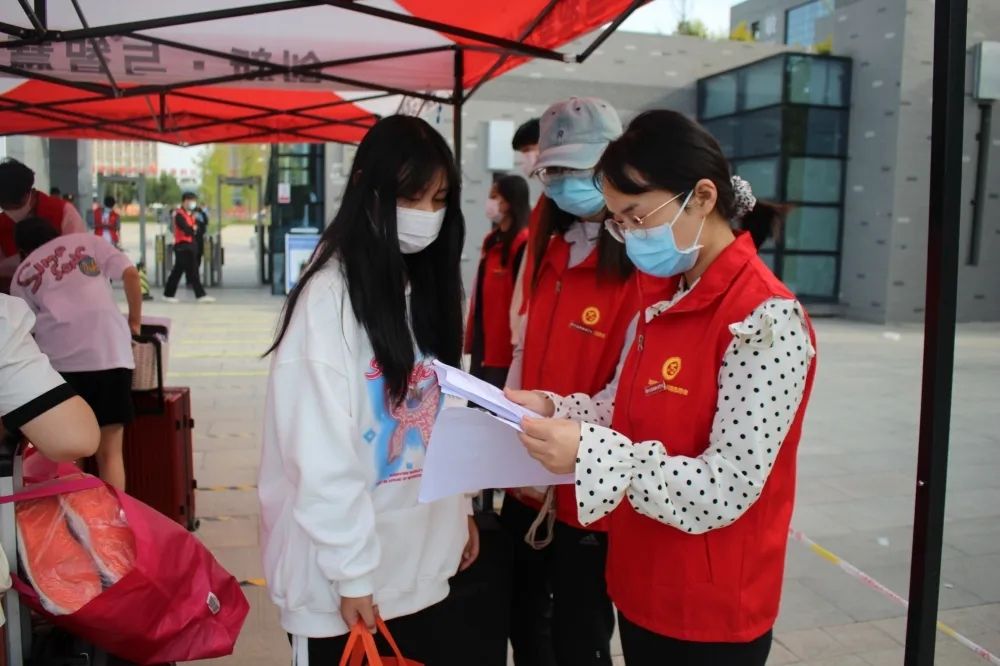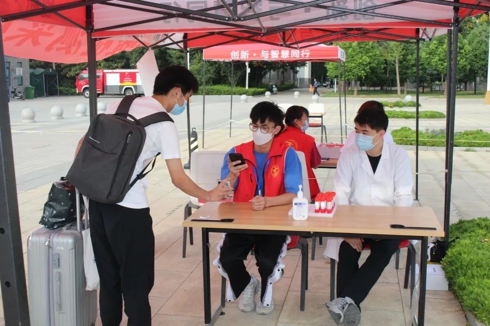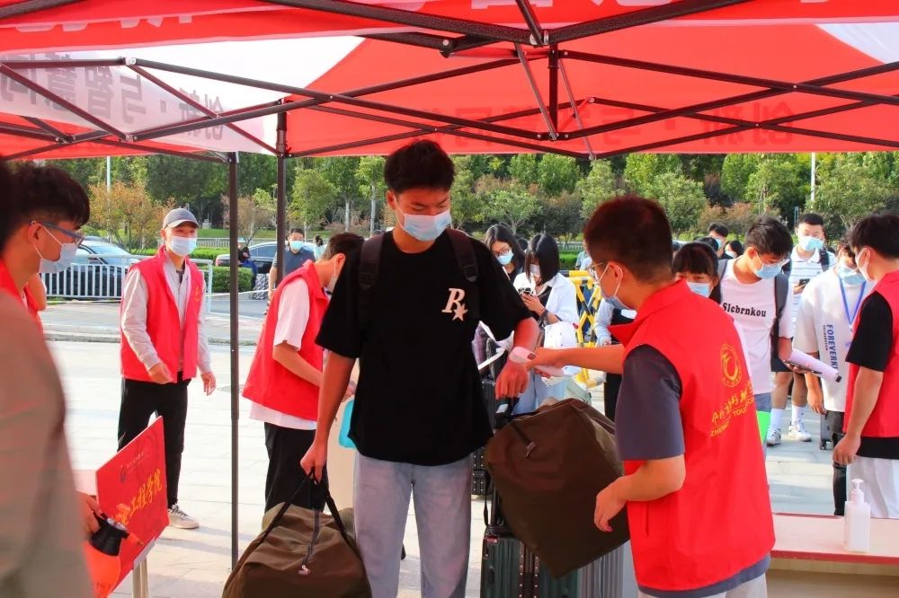 报到现场,工作人员和志愿者们早早到达工作岗位,以高度负责的态度精准落实好每个环节,迎接同学们返校“回家”。查验环节,志愿者们按照疫情防控有关要求,井然有序开展“戴口罩+健康码(行程码)+六项健康档案+测温+行李消杀+核酸检测”的入校核验工作,整个流程有条不紊的开展。期间,校院领导高度重视,多次到学院门口实地检查学生返校报到工作,叮嘱现场工作人员注意规范各环节的工作流程并做好个人防护,强调务必对学生返校的重要环节做好检查和把关,确保学院学生返校工作的万无一失。