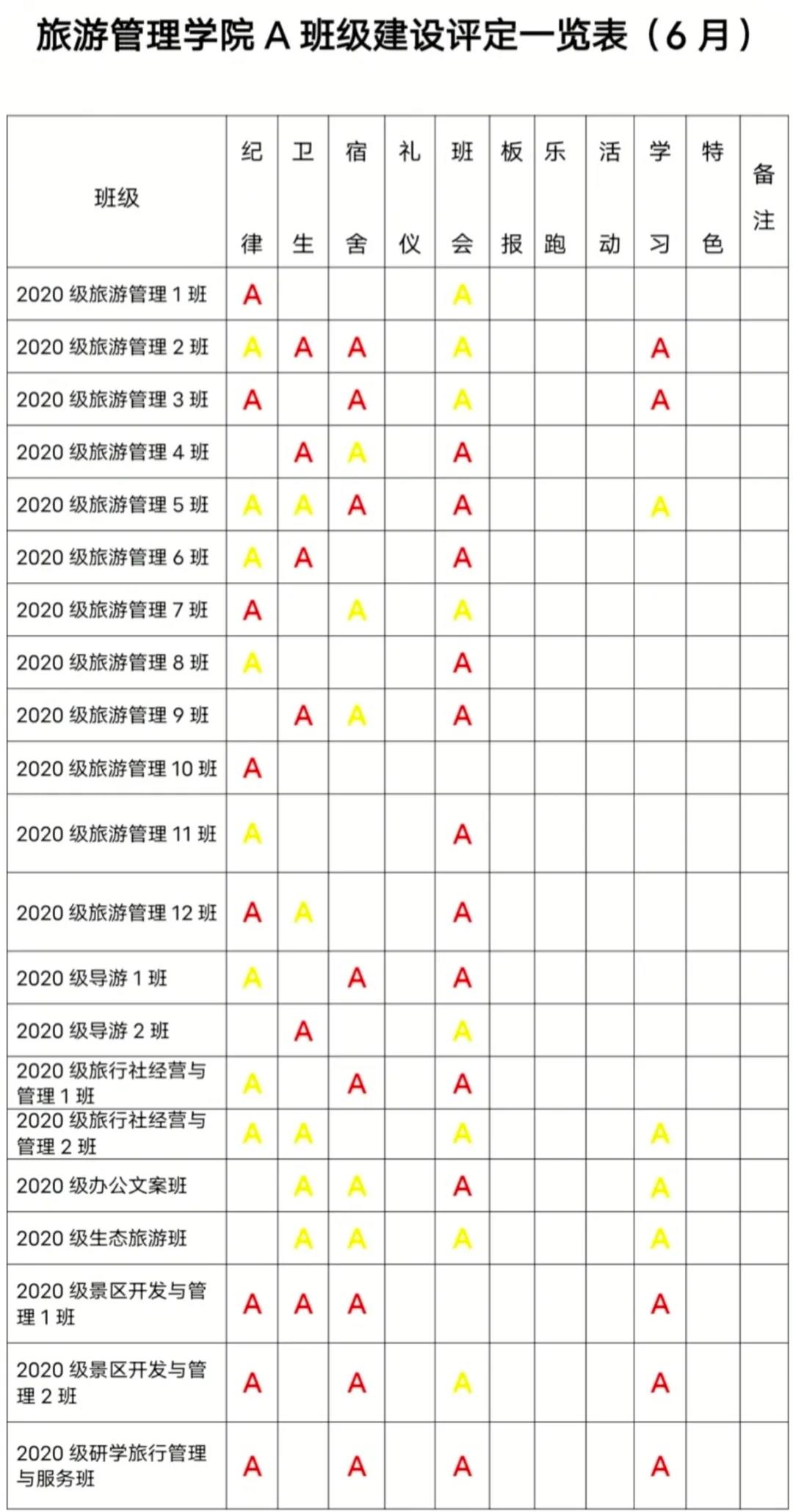 为进一步深化学院“三全育人”综合改革试点工作,贯彻学院“三全育人”工作要求,实现全方位育人。全面促进学生“三素养”教育不断提升,坚持立德树人,把培育和践行社会主义核心价值观落到实处;为培养学生的责任感、荣誉感、合作意识、奋斗意识和竞争意识,激发学生进取心,坚持以学生为本,把正能量融入学生教育、管理和服务的全过程。经研究,结合校院实际,参照A级景区评定规则,实施A级班级建设评定标准,由以往的上墙授牌转变为每月用微信公众号的方式推送,使学生学有榜样、赶有方向、比有对手、追有目标,为校院的可持续发展注入新动力!
