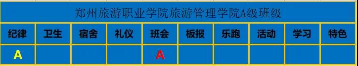 A级班级评定结果如下