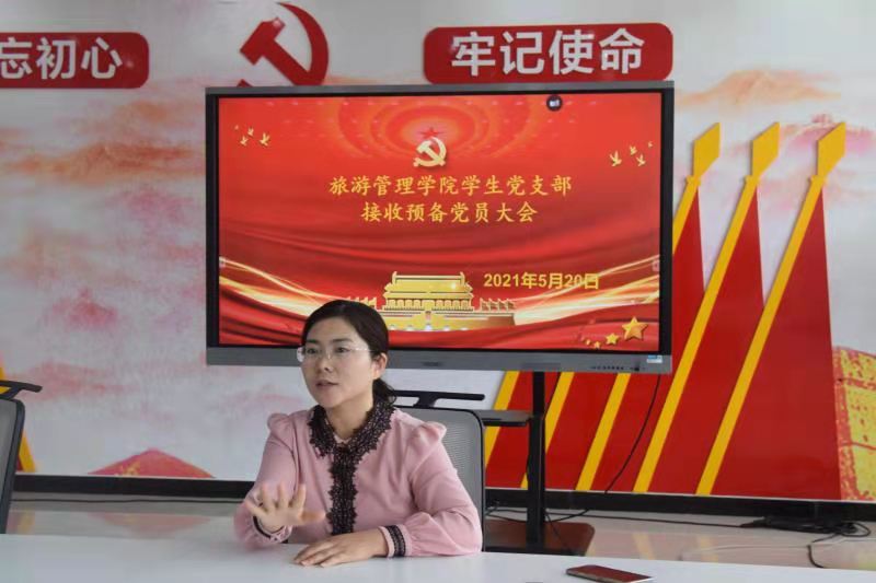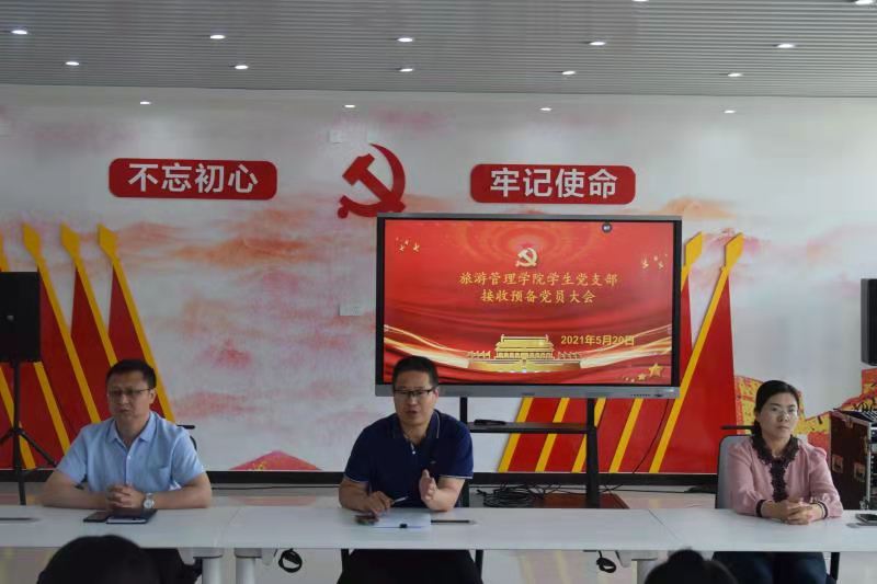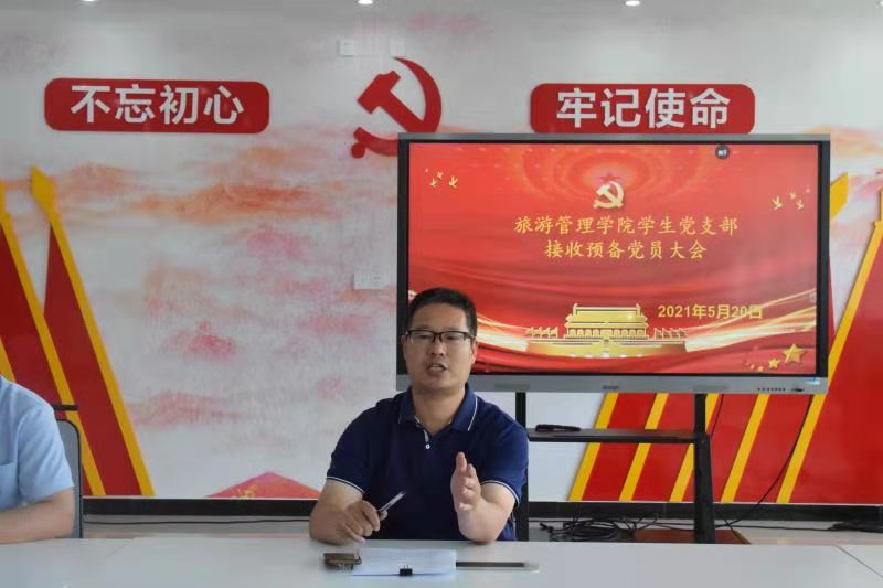 2021年5月20日中午12:00中共郑州旅游职业学院旅游管理学院学生党支部在教学楼5A402召开预备党员接收大会。本次大会就预备党员郭欣等40名同志是否同意接收预备党员进行讨论和表决。会议应到党员10名,实到党员10名,会议由旅游管理学院党总支书记秦合岗主持,支部党员出席会议。
