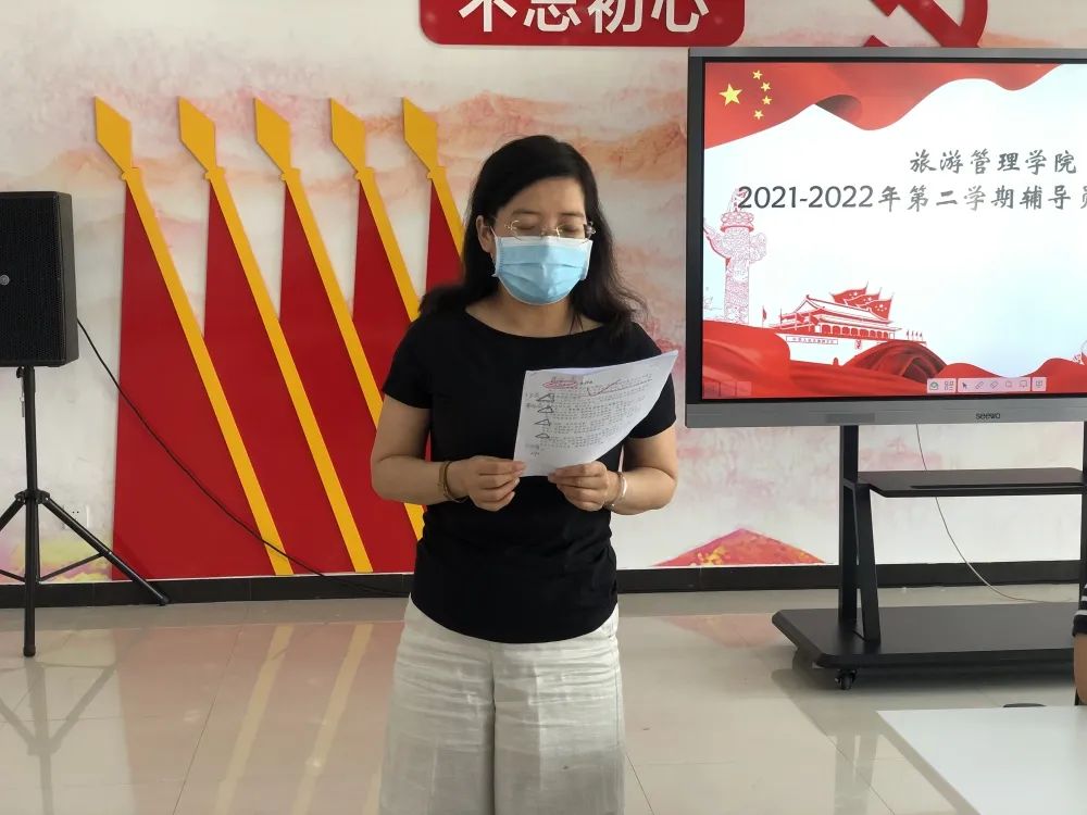 6月8日上午,旅游管理学院2021——2022学年第二学期辅导员工作考核会在5号楼党建馆召开。旅游管理学院党总支书记秦合岗、党总支副书记张楗让、团总支代书记张颖以及全体专兼职辅导员参加会议。会议由张楗让主持。