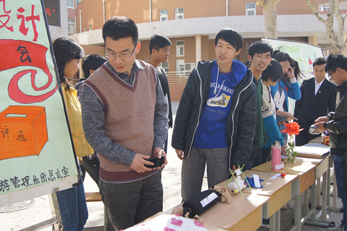 此次活动内容分展览投票和旧衣物义卖两个部分。同学们利用课余时间,巧妙的将旧衣物进行改造,制作成一些工艺品,如筷子制作成装饰物,长裤改短裤,废旧纸盒改成储物盒等。活动吸引了在校的广大师生驻足观看,并对自己喜欢的作品进行投票。院长樊豫陇教授也被吸引到活动现场,并对活动的创意进行了肯定。