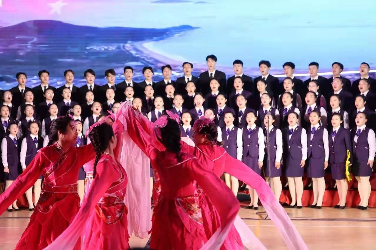 旅游管理学院的同学们用独具匠心的唱法和大气磅礴的歌声和旋律歌颂了中华民族自强不息的伟大精神、阔步向前的豪迈气概,唱出了新时代青年对党、对祖国、对社会主义的浓厚深情和热血讴歌,歌声催人奋进,气势振奋人心!整场比赛洋溢着满满的爱国热情,充分展现了同学们对祖国毫无保留的挚子情怀。