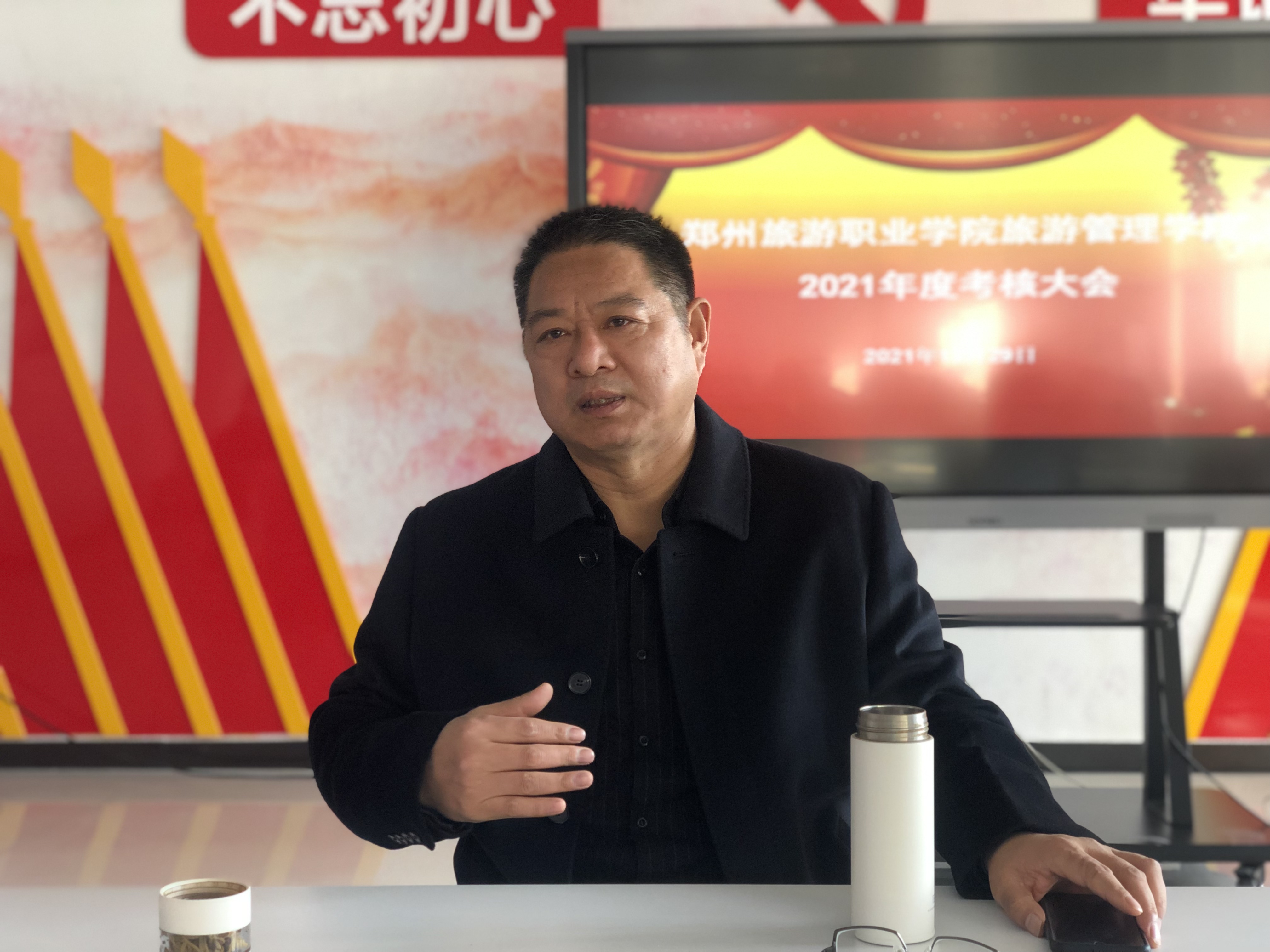 12月29日上午,2021年度旅游管理学院考核大会在5号楼党建馆召开,以郑州旅游职业学院党委委员、副校长王振超为组长,在体育教学部书记杨志渊、纪检委员郝好磊监督下的考核组对旅游管理学院进行考核。旅游管理学院全体教职工参加会议,会议由旅游管理学院党总支书记秦合岗主持。