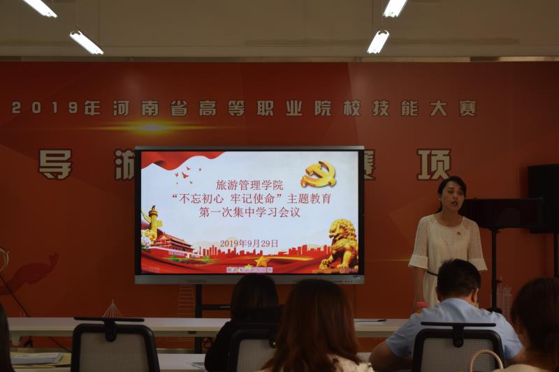 9月29日下午13时30分,旅游管理学院于四楼会议室召开“不忘初心·牢记使命”主题教育第一次集中学习会议暨党总支书记上专题党课活动。本次学习由学院党总支书记肖靖主持,全院党员同志参与本次学习。