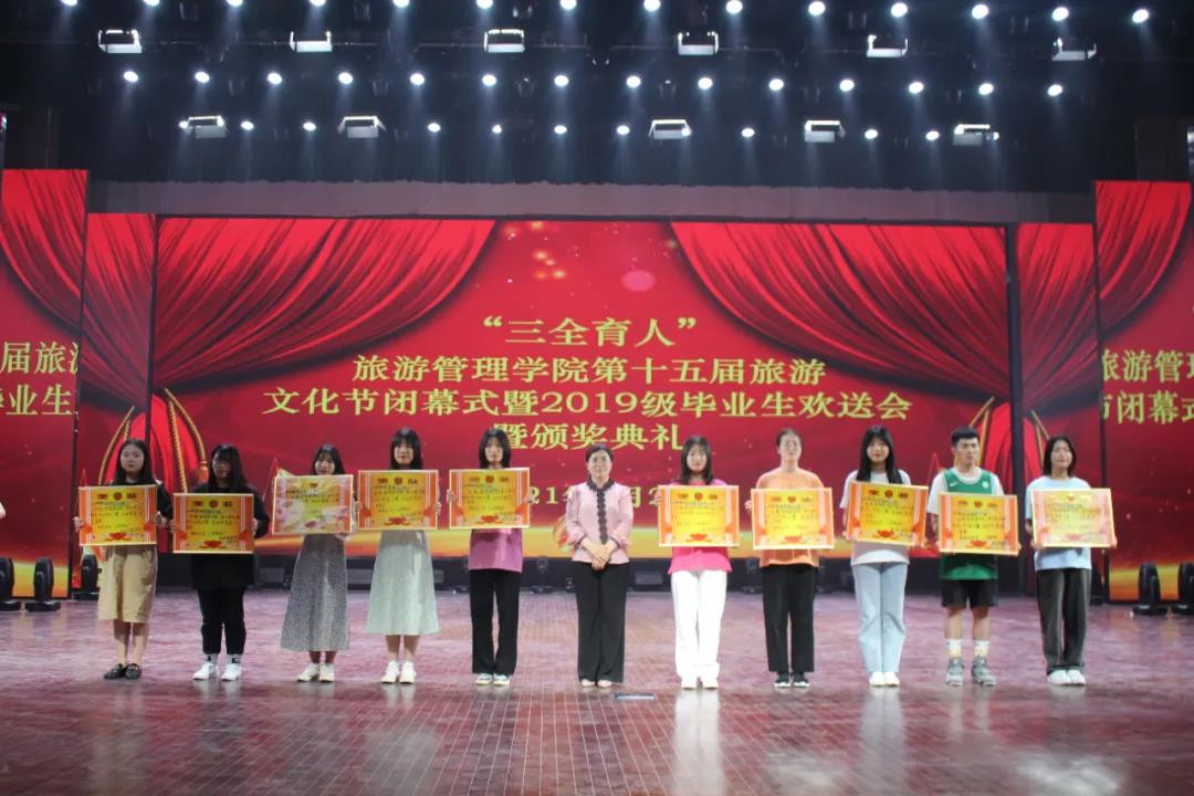 6月2日下午,旅游管理学院第十五届旅游文化节闭幕式暨2019级毕业生欢送会暨颁奖典礼在象湖校区艺术中心隆重举行。出席的领导有:郑州旅游职业学院党委委员副校长王振超、团委书记张笃川、学生处处长李立功、安保中心主任宋亚卿、旅游管理学院党总支书记秦合岗、旅游管理学院副院长张东月。特邀嘉宾:1993级优秀毕业生黄鹏岳,现任黄河稻夫集团总裁、黄河稻夫假日酒店总经理。