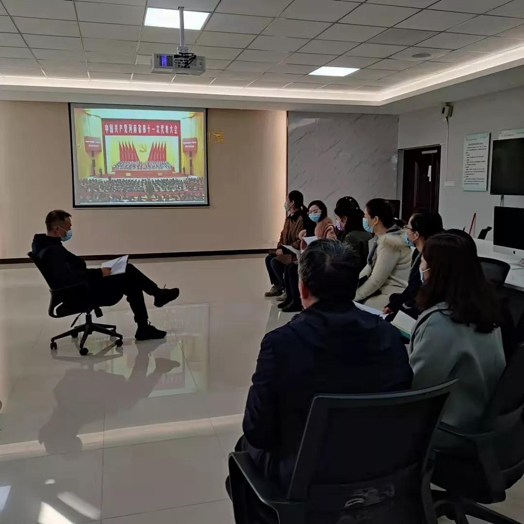 会上,宣传委员杨璐首先组织大家一起观看了中国共产党河南省第十一次代表大会上楼阳生同志的讲话,接下来山杉书记传达了第十一次党代会精神,部署贯彻落实工作,要求支部党员教师坚持以习近平新时代中国特色社会主义思想为指引,坚决贯彻落实习近平总书记视察河南重要讲话重要指示,深入学习贯彻省第十一次党代会精神,要抓好学习,强化精神引领。采取自学、集中学习、研讨等多种学习形式集中精力抓好学习,真正做到学深学透、弄懂弄通、入脑入心。