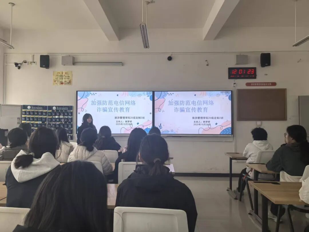 针对电信网络诈骗防范宣传教育,班主任在会上重点强调“三不原则”,即“不轻信、不透露、不转账”。通过组织观看反诈短视频、展示校园高发诈骗案例等形式,班主任详细讲解了“刷单返利”“虚假购物退款”“游戏账号交易”等常见诈骗套路的共性特征,并以真实数据提醒同学们“天上不会掉馅饼”,提高警惕。此外,班会还组织了“反诈知识抢答”活动,围绕“陌生链接能不能点”“个人信息要不要随便给”等实际问题展开互动,推动反诈知识入脑入心,同时鼓励同学们在发现可疑情况时及时反应,共同筑牢校园反诈“安全网”。